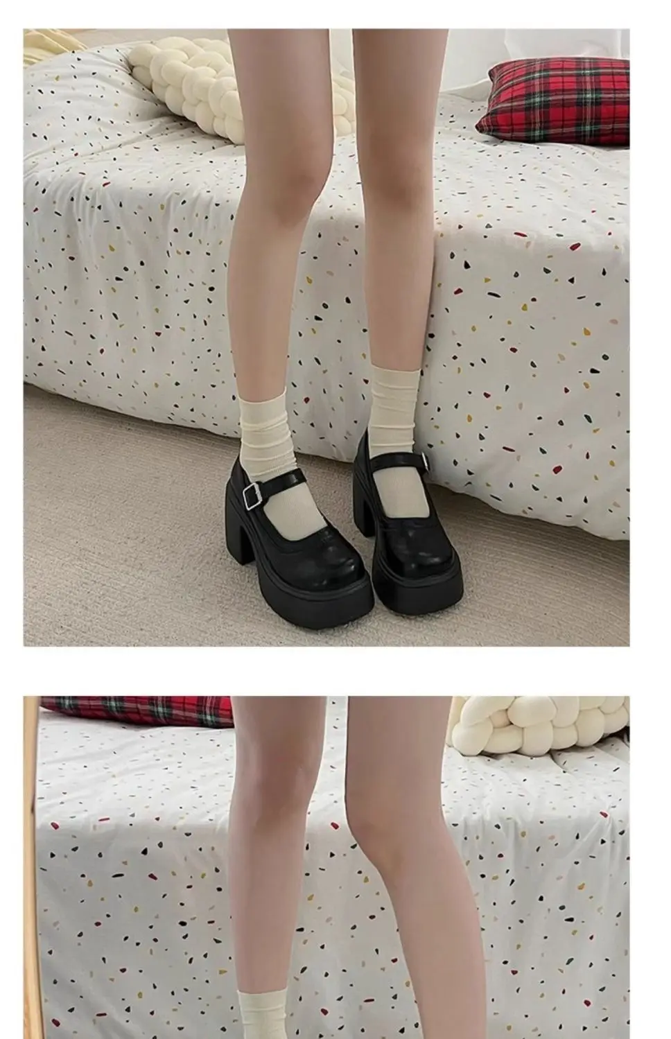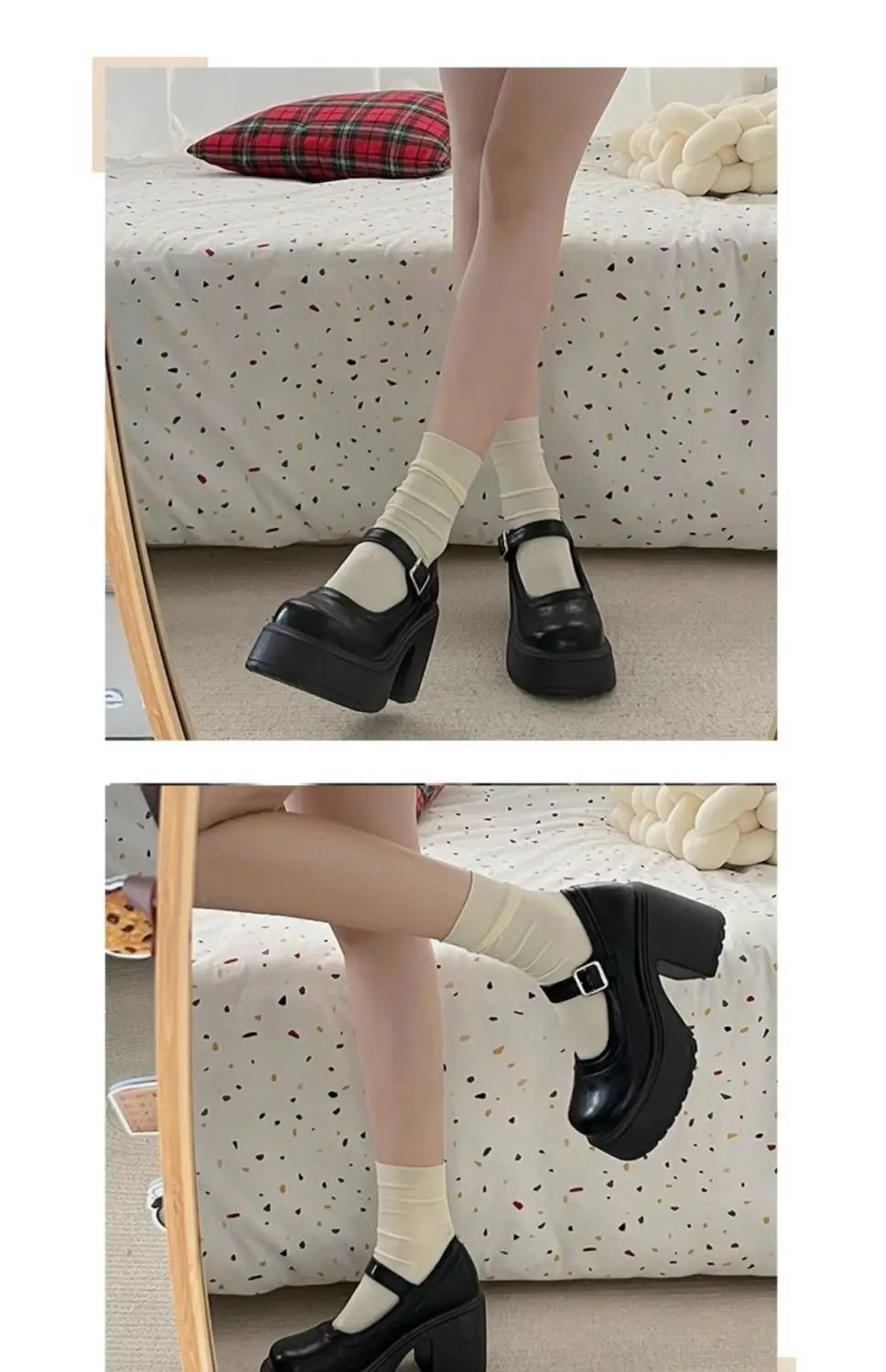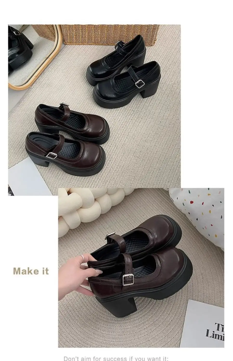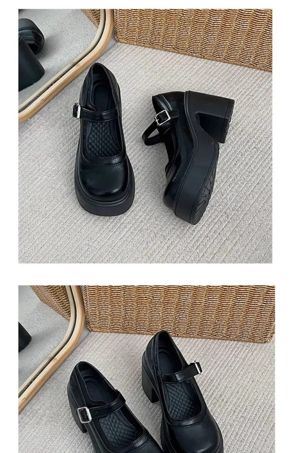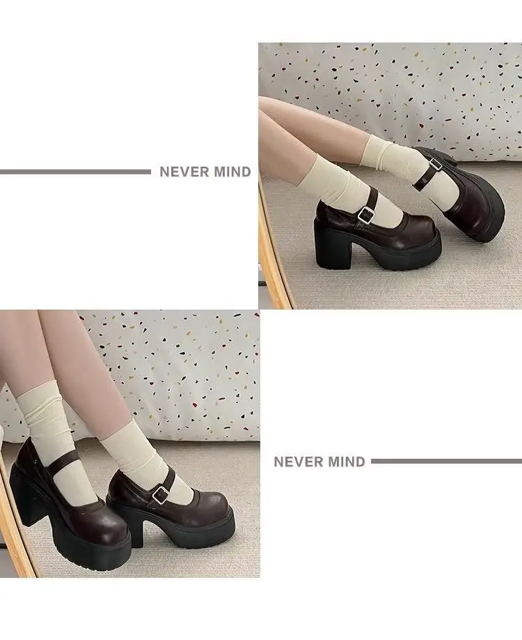 Elevate your style with these Mary Jane shoes featuring a French thick heel for a chic and fashionable look.