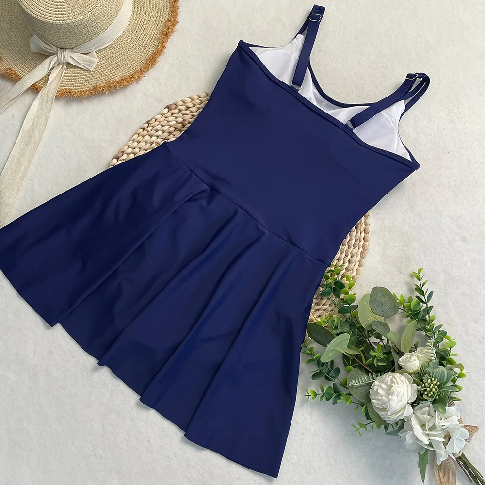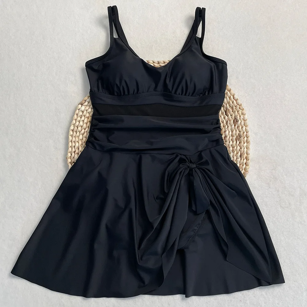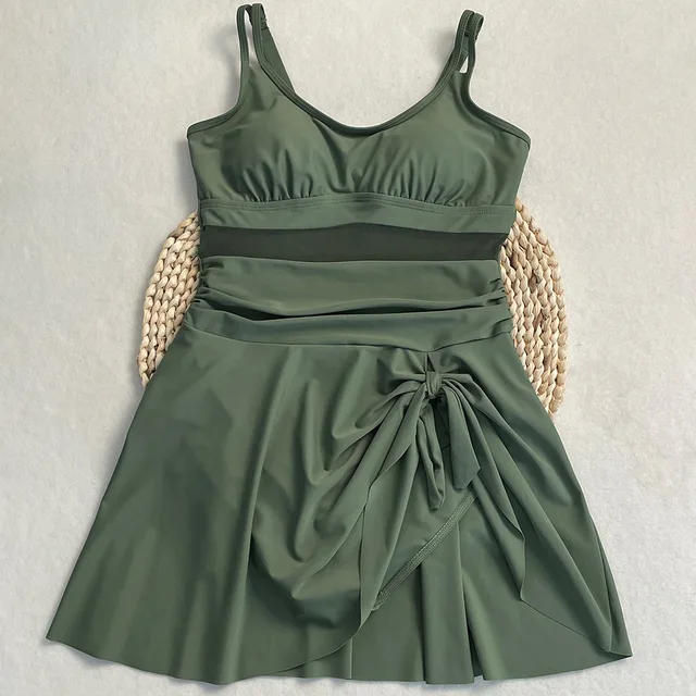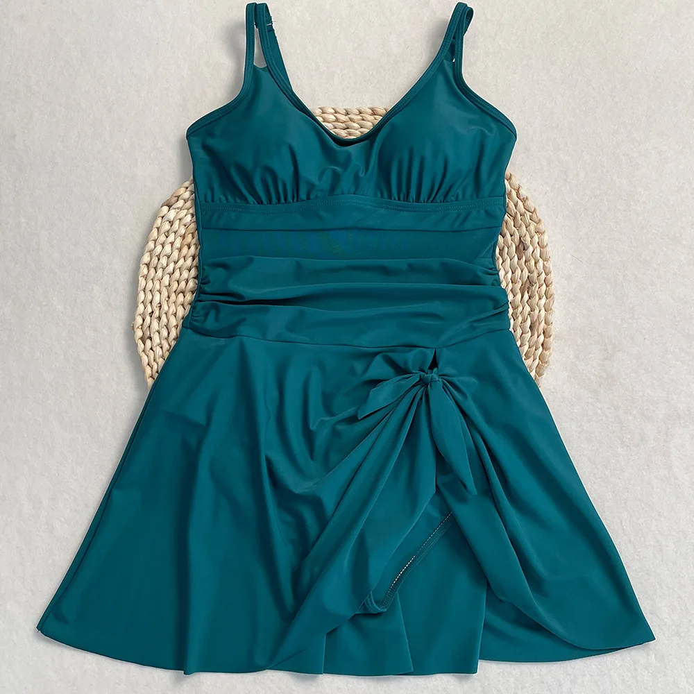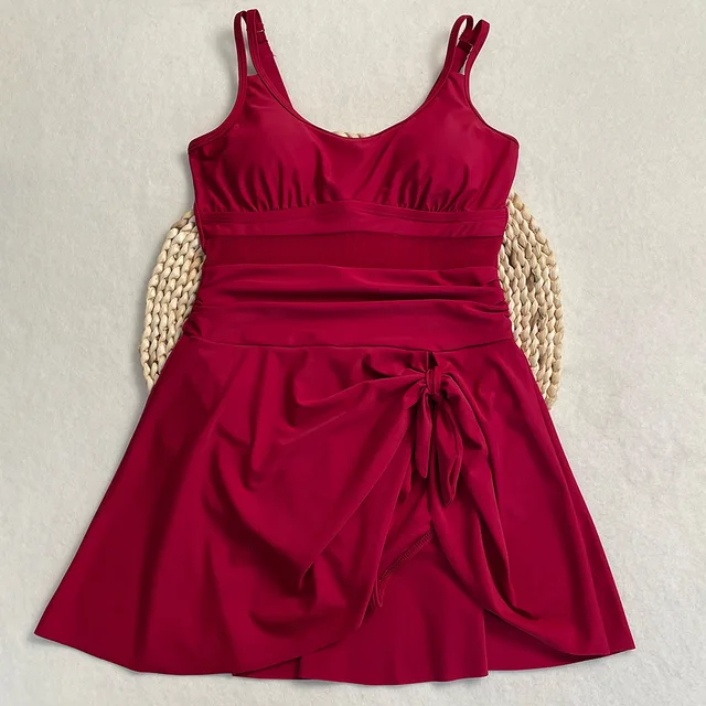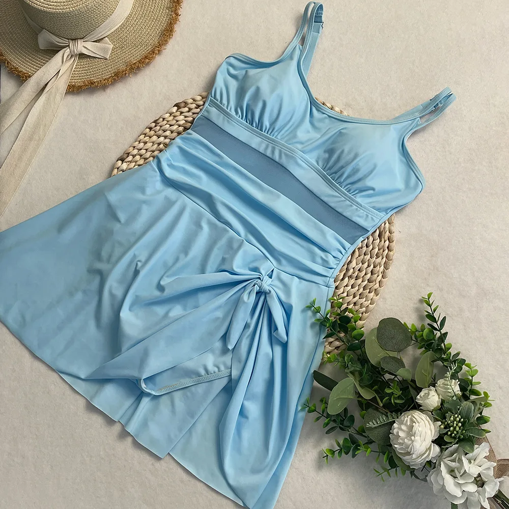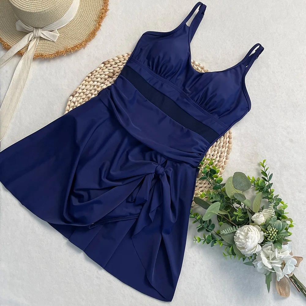 Womens One Piece Swimdress Tummy Control Swimsuits Tie Knot Skirt Bathing Suit S-2XL Swimwear Beach Dress