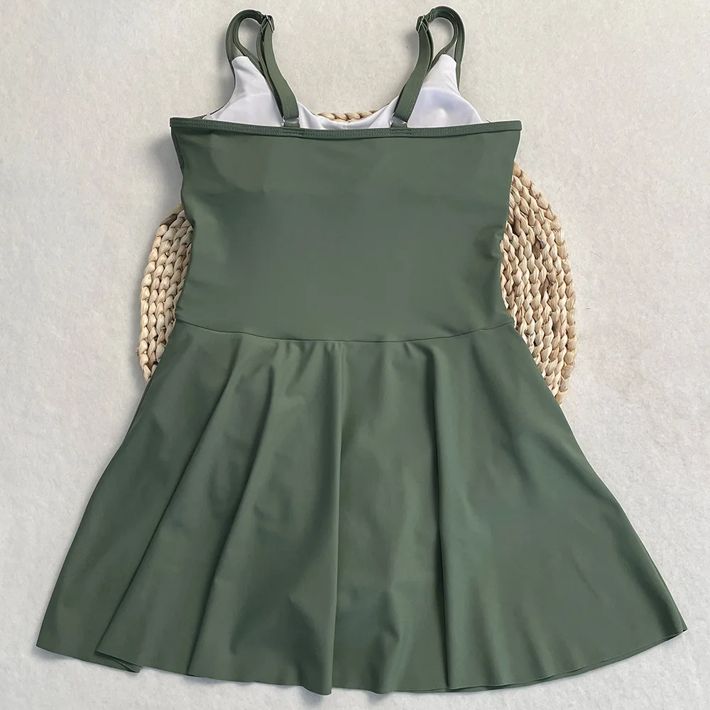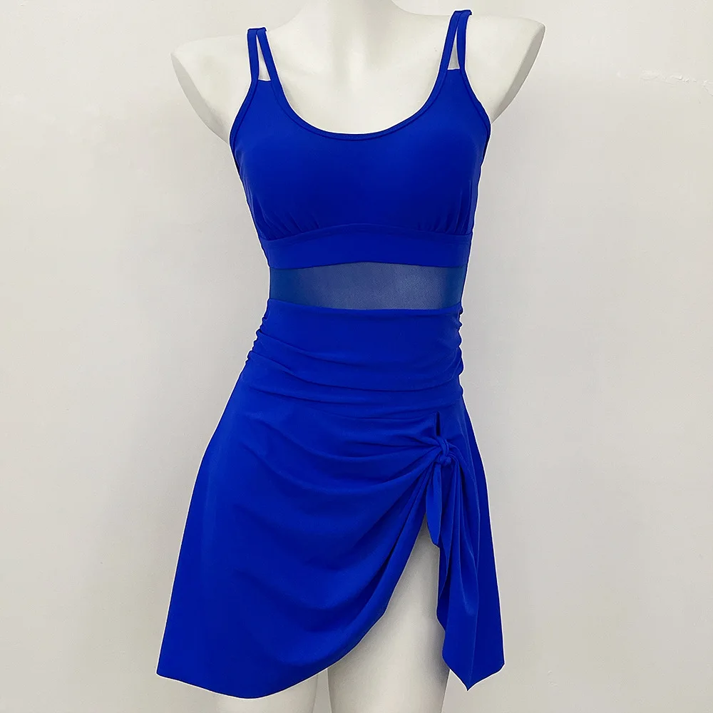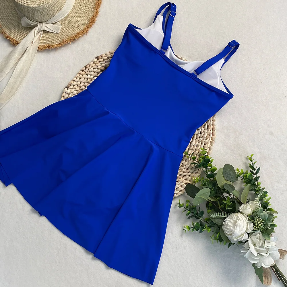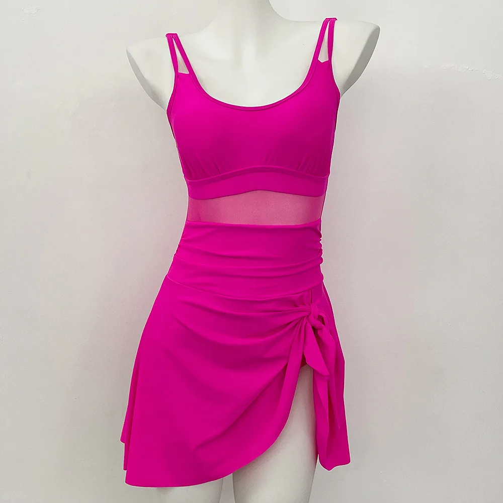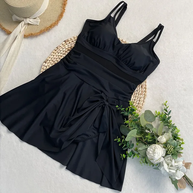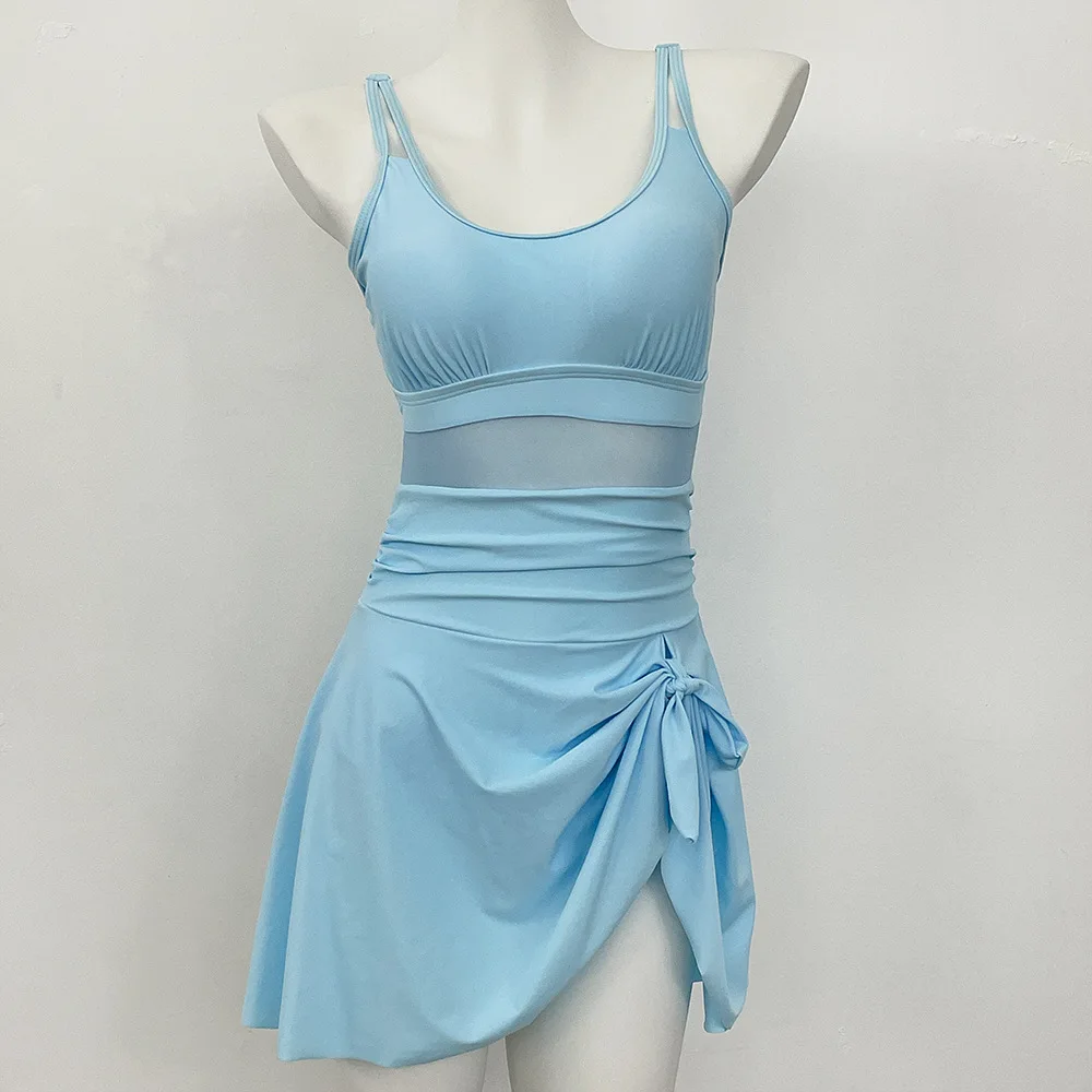 Womens One Piece Swimdress Tummy Control Swimsuits Tie Knot Skirt Bathing Suit S-2XL Swimwear Beach Dress