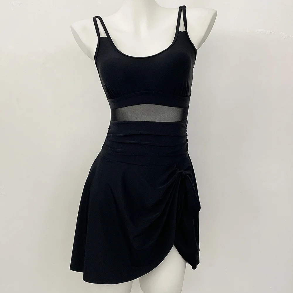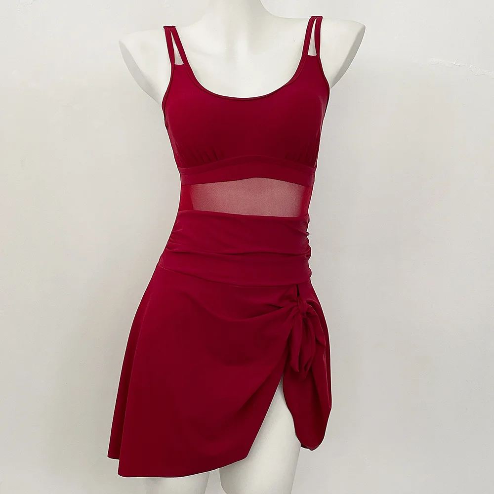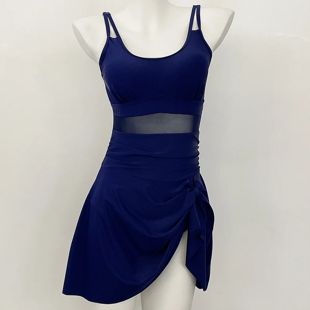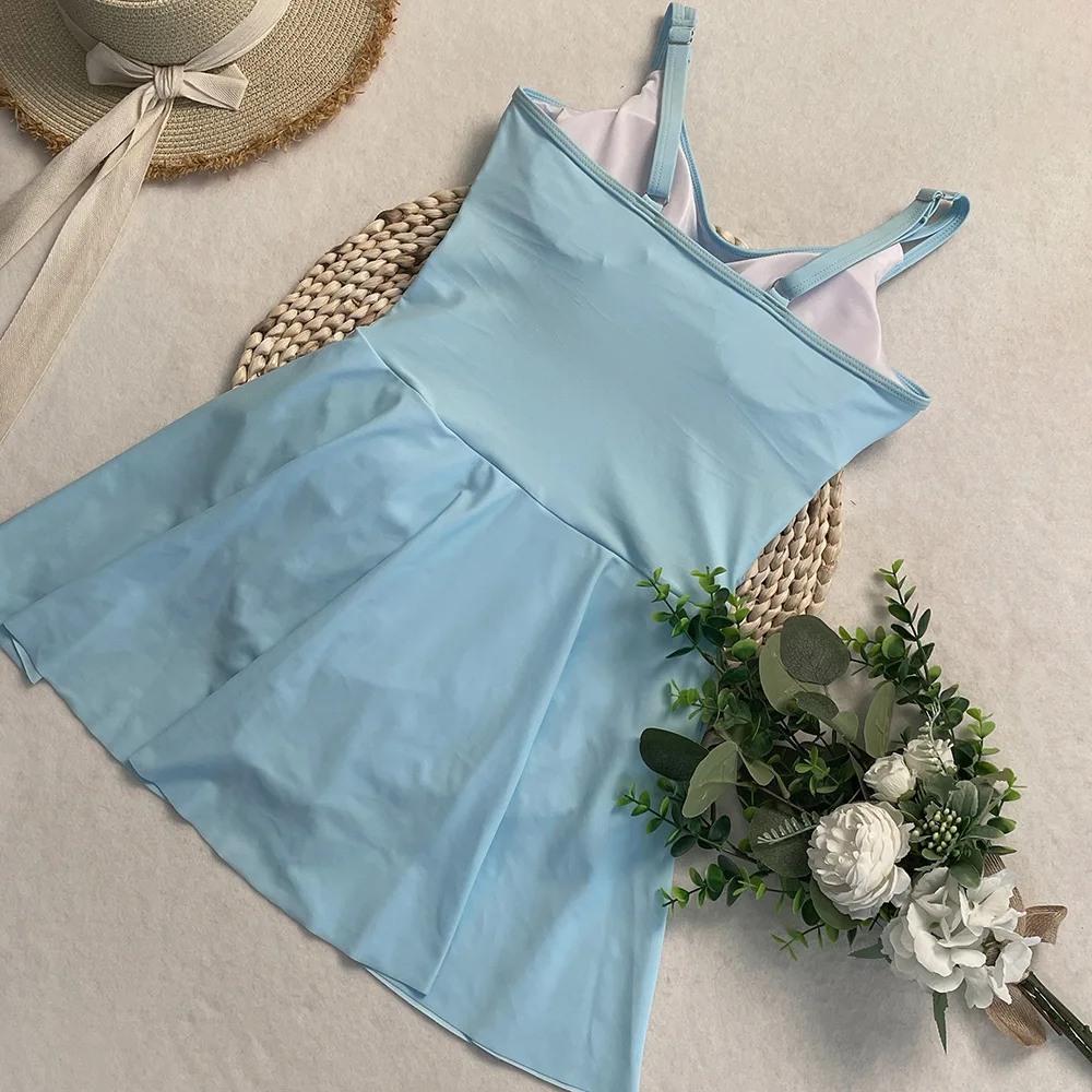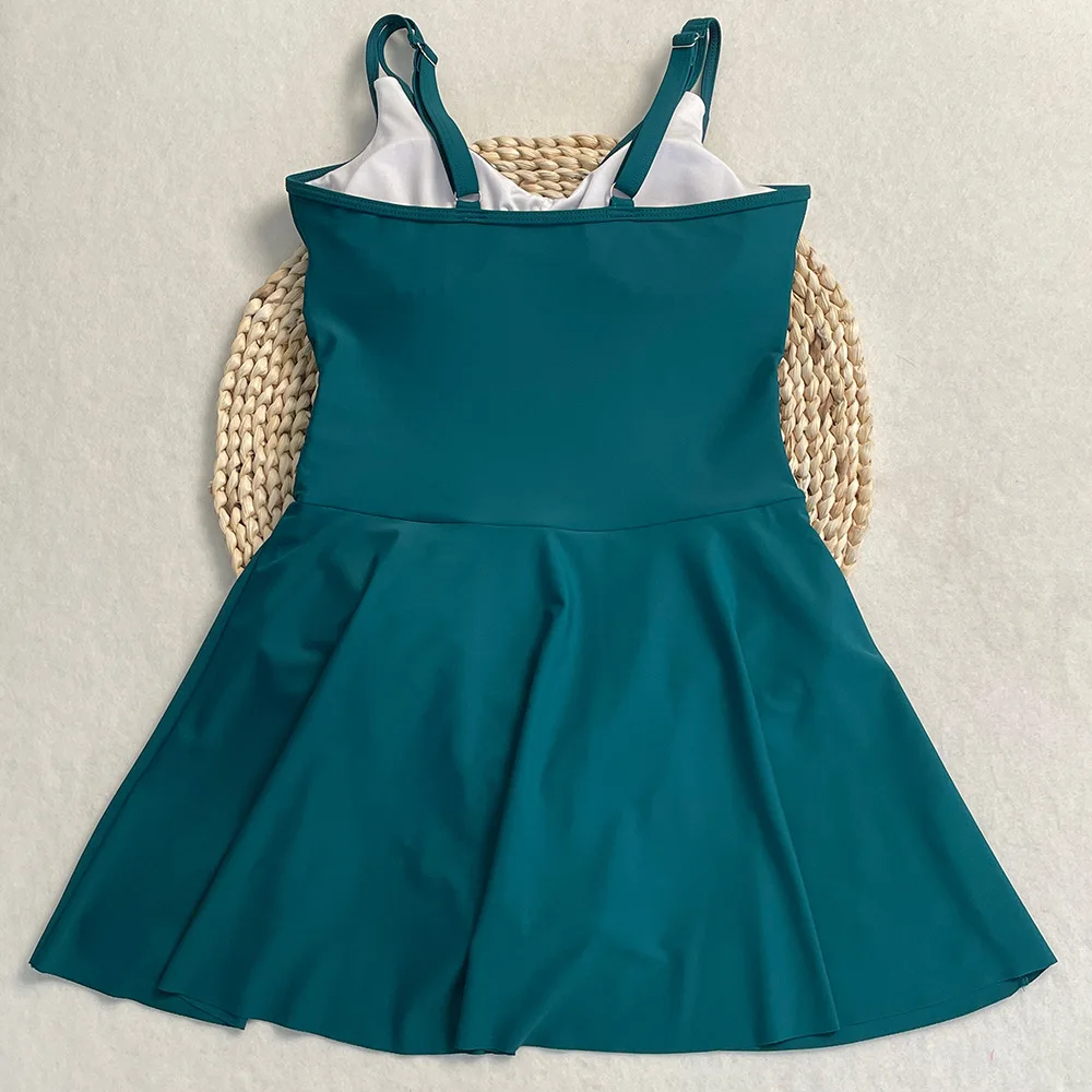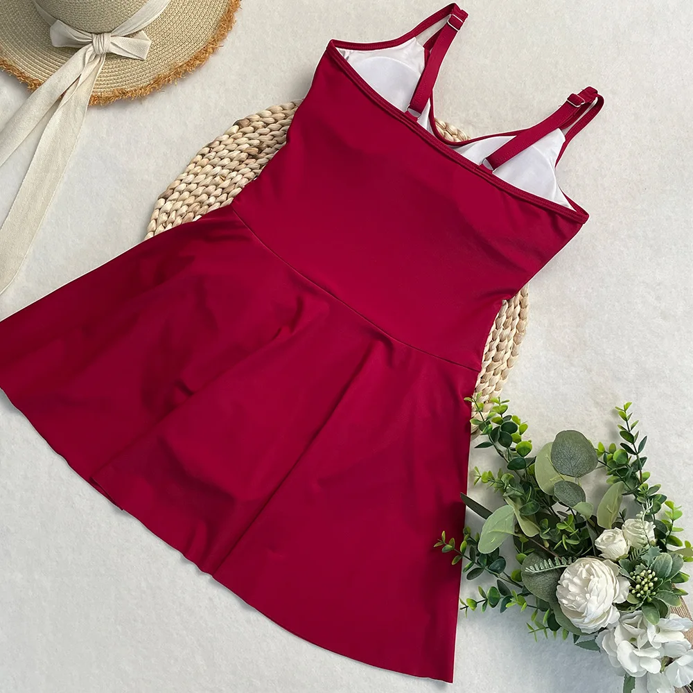 Womens One Piece Swimdress Tummy Control Swimsuits Tie Knot Skirt Bathing Suit S-2XL Swimwear Beach Dress