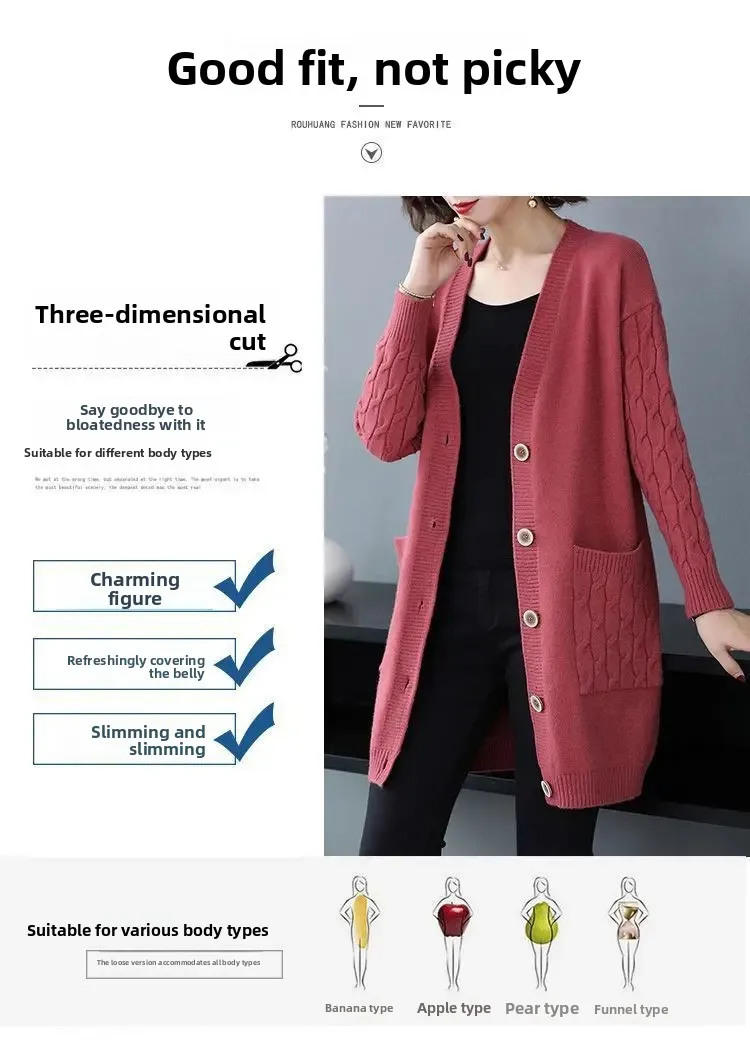 Women’s Open Cardigan Sweater Mid-Length Thin New Hot Sale Of The Season Large Size Spring Autumn