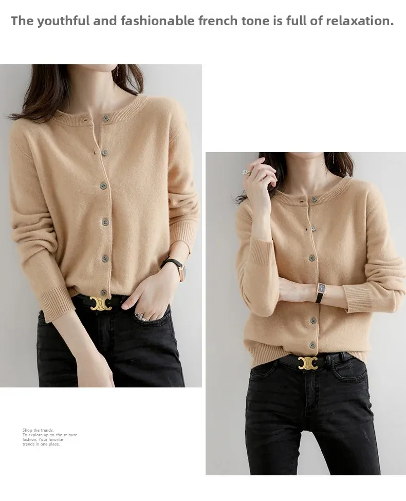 • Classic Crew Neck Style : Featuring a classic crew neck style, this cardigan exudes timeless elegance and sophistication.