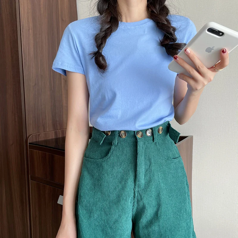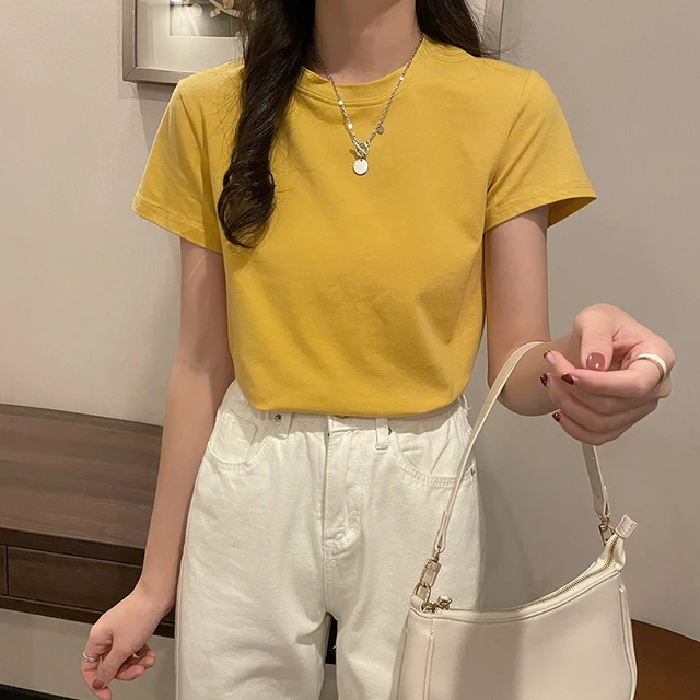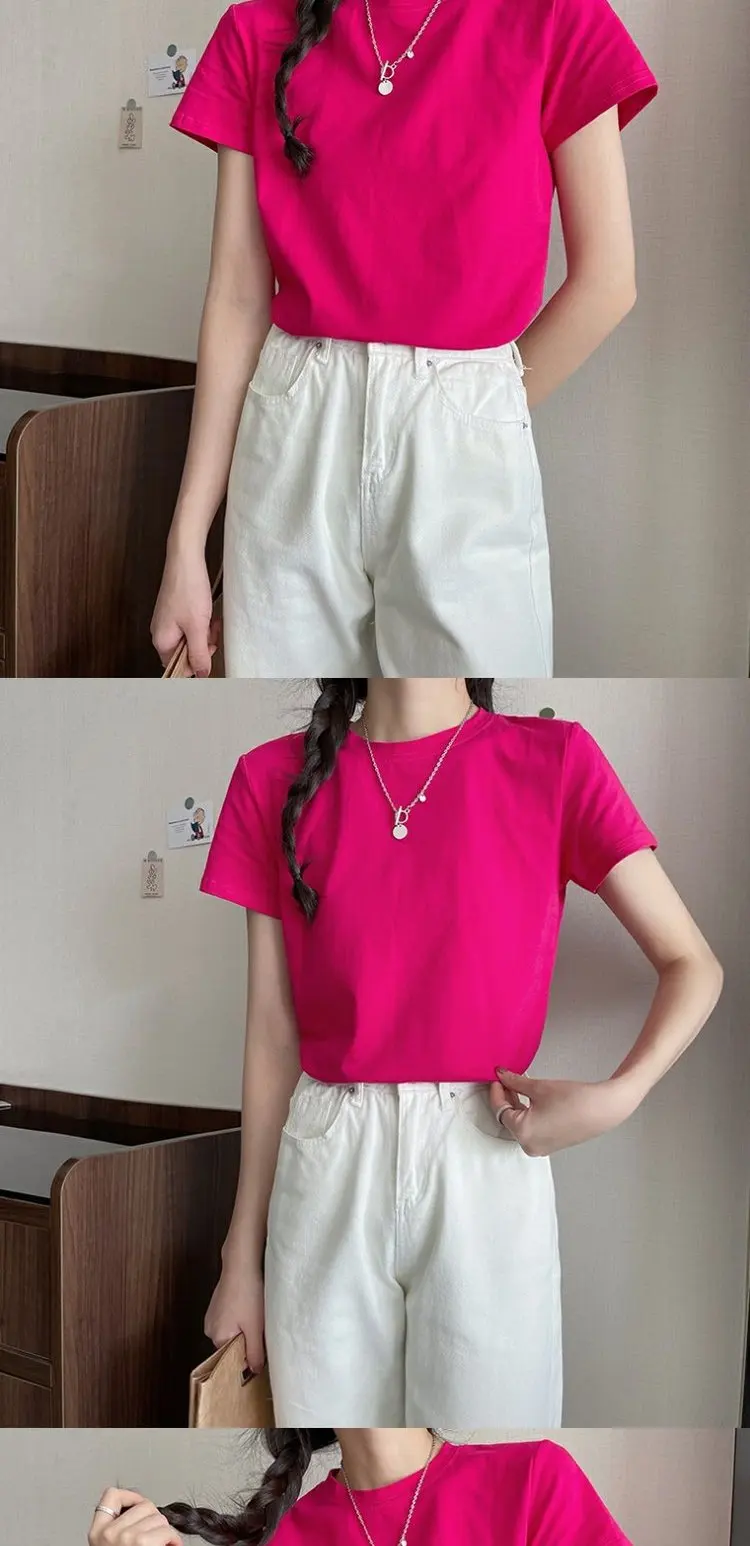 The pure color pattern of this T-shirt adds a touch of simplicity and elegance, making it a versatile addition to any wardrobe.