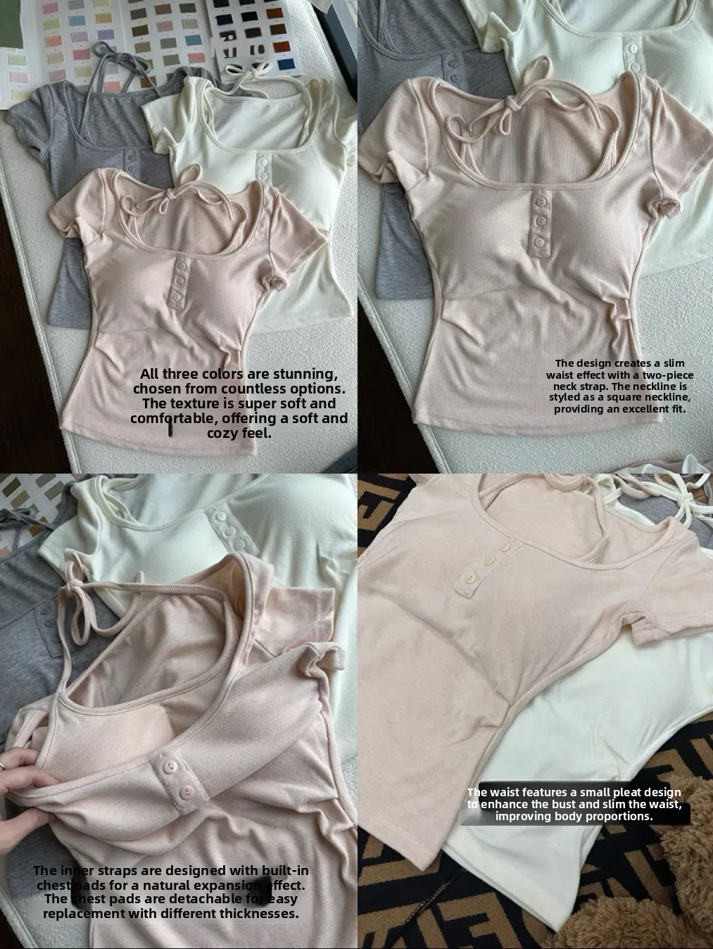 This T-shirt comes with a built-in bra pad, offering additional support and comfort for everyday wear.