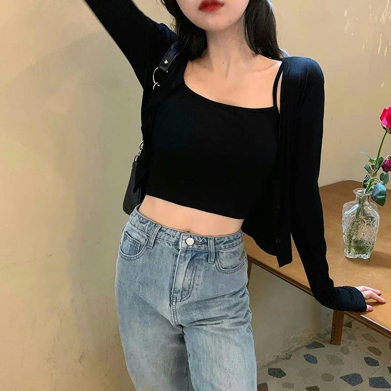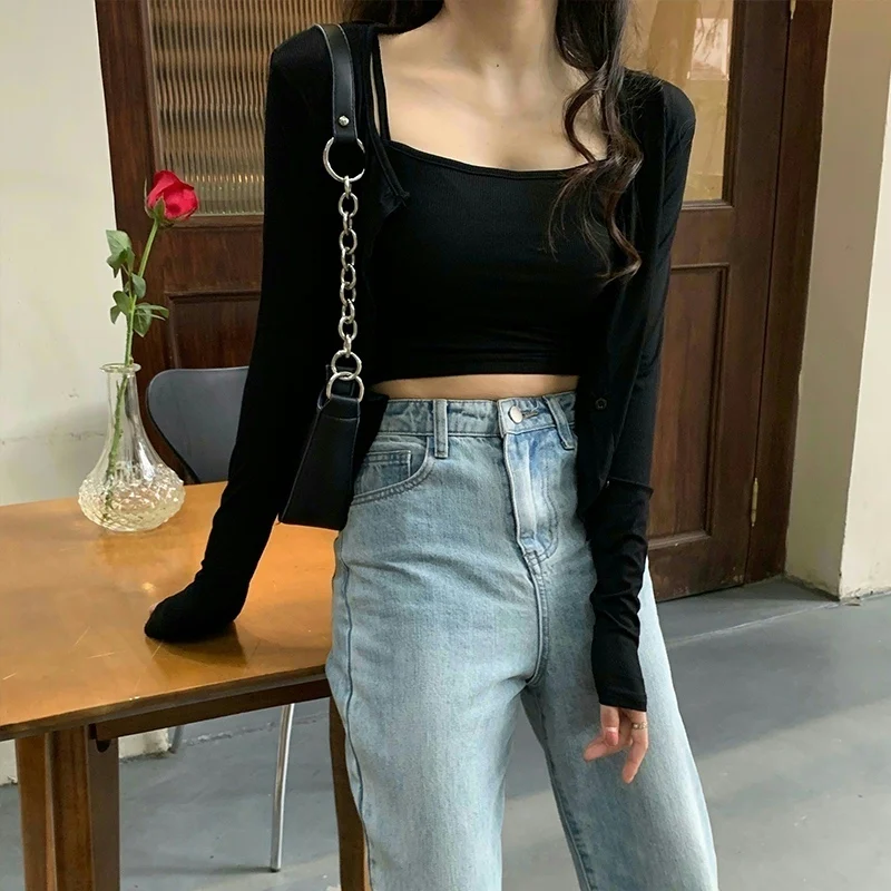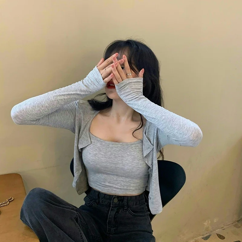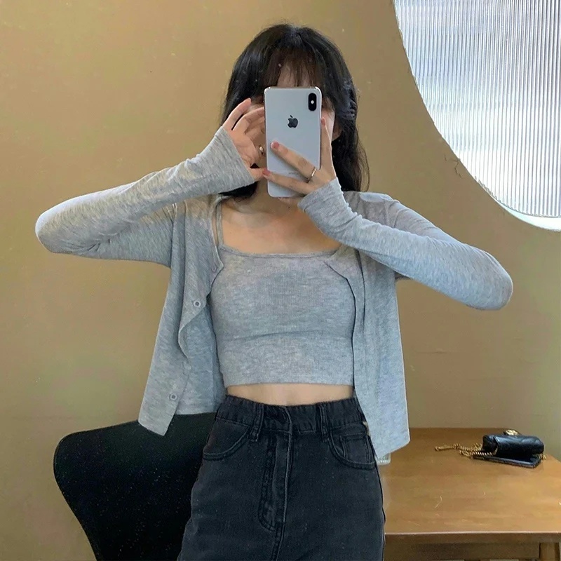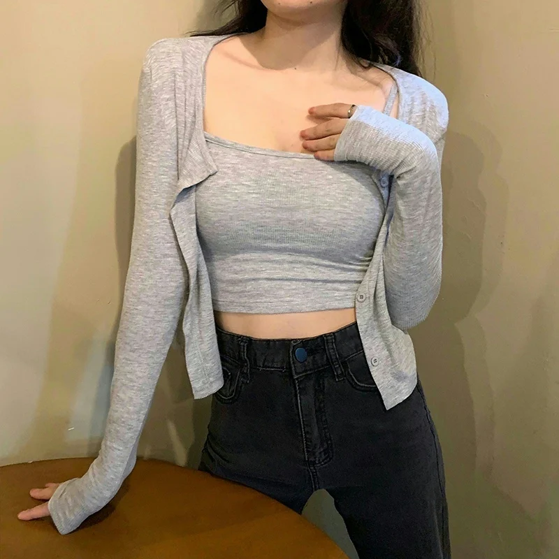 The set includes a stylish T-shirt and a long-sleeve cardigan, offering versatility for different occasions and weather conditions.