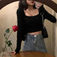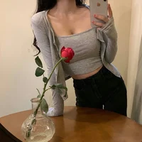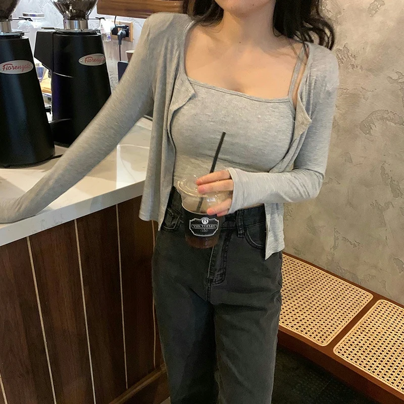 The set includes a stylish T-shirt and a long-sleeve cardigan, offering versatility for different occasions and weather conditions.