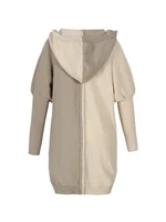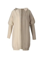 Loose-fitting and hooded, this cardigan provides ample room for movement and warmth during autumn and winter.