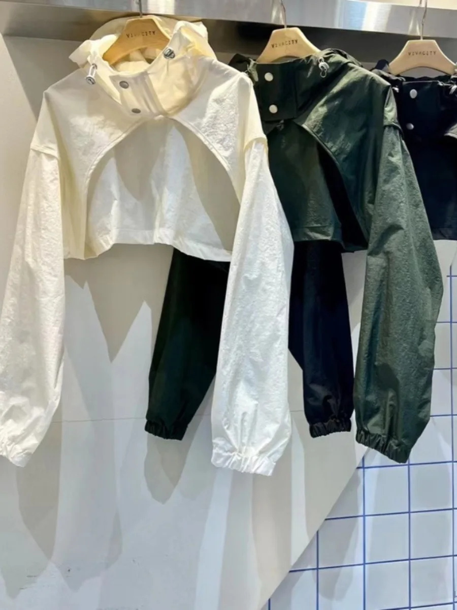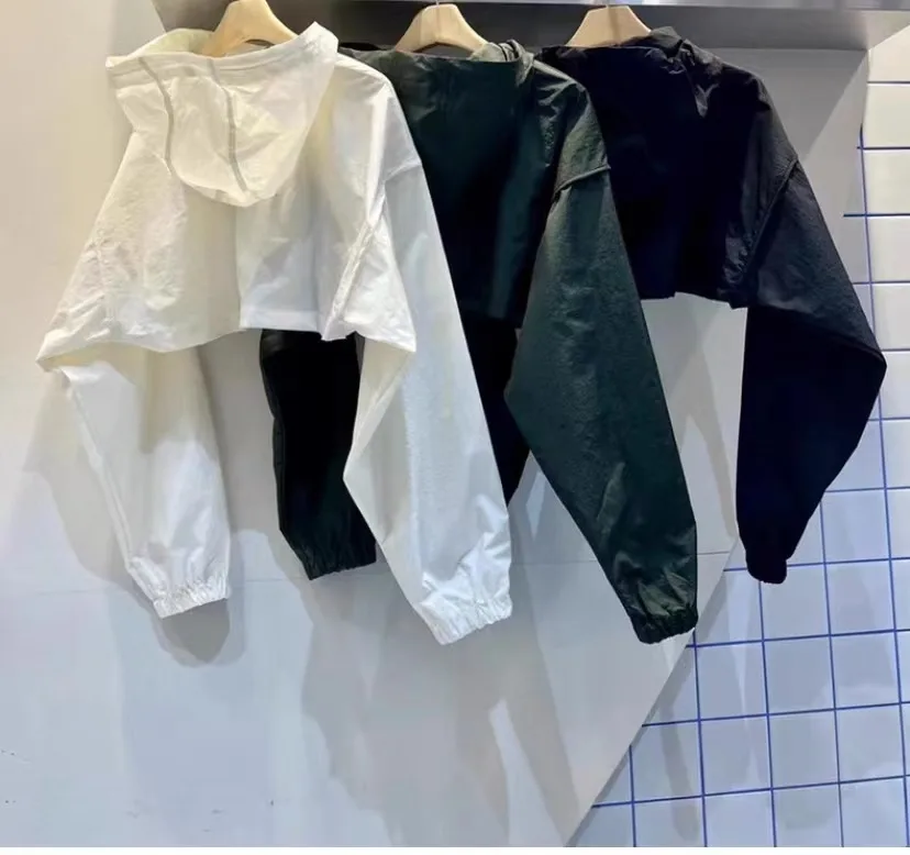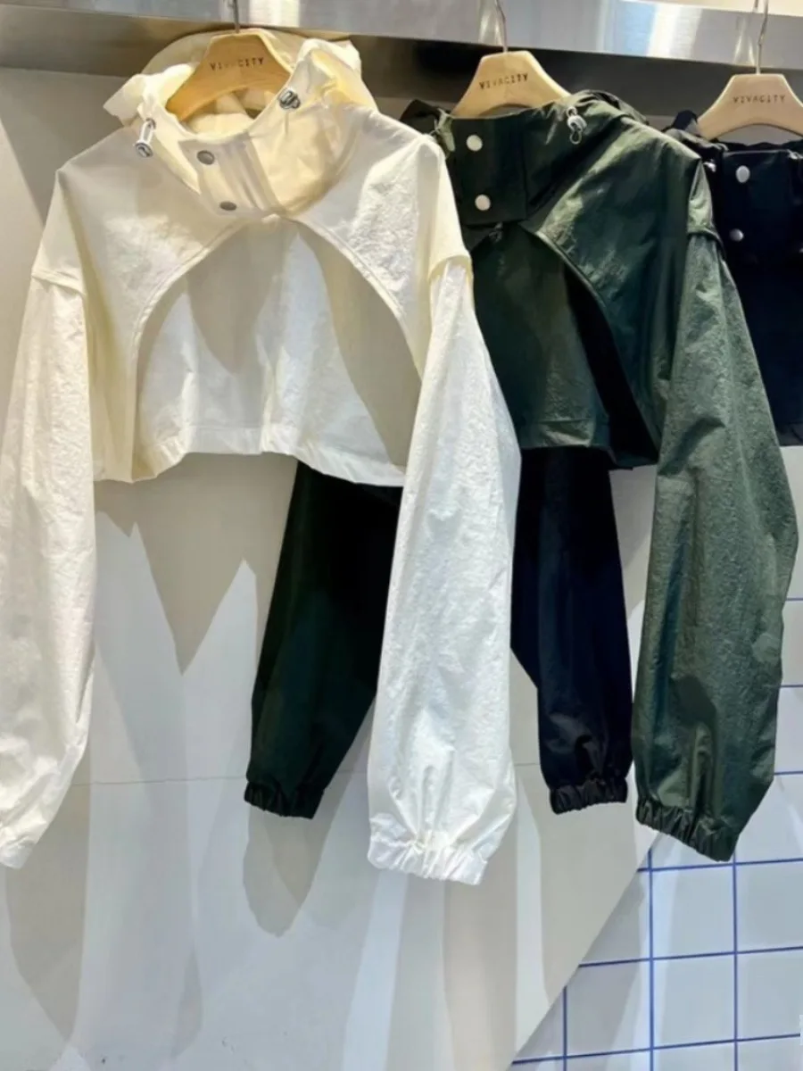 Featuring a non-removable hood, this jacket provides extra protection against the sun and rain, perfect for summer outings.