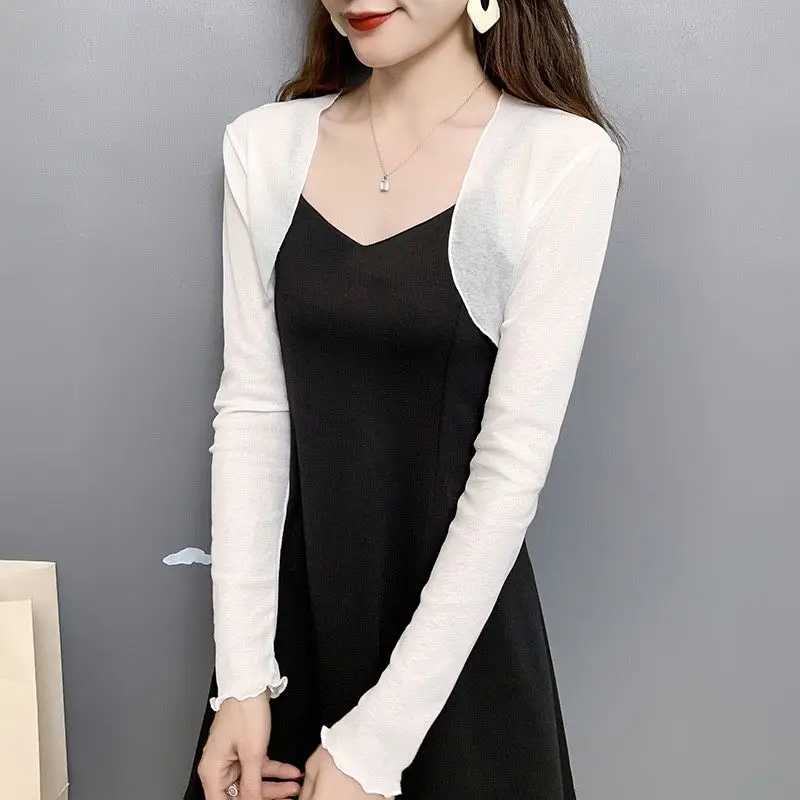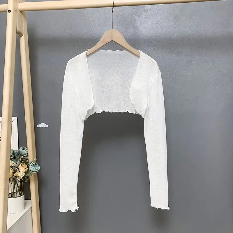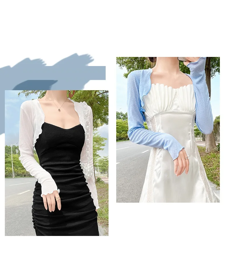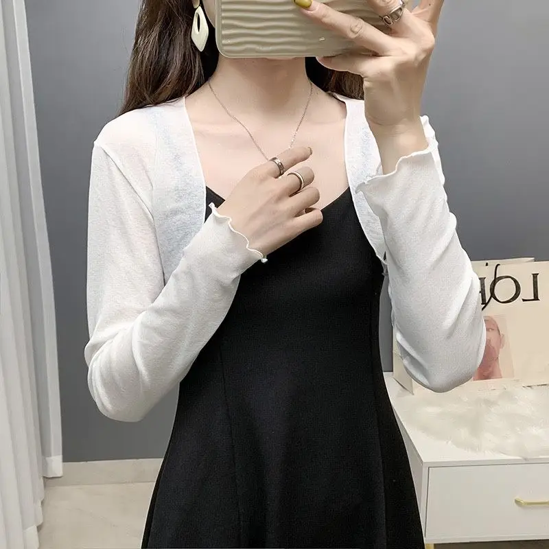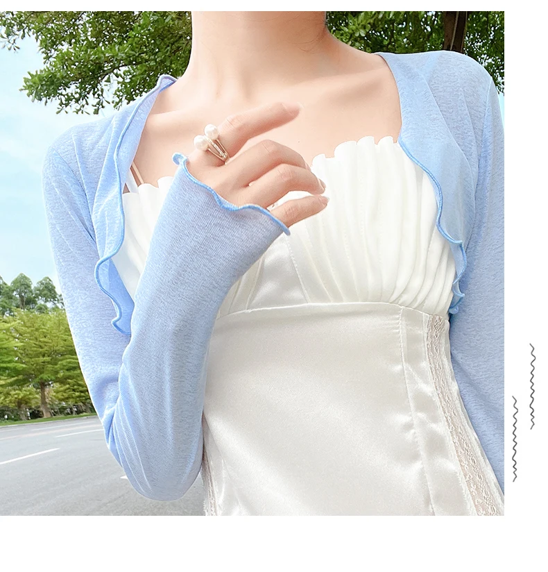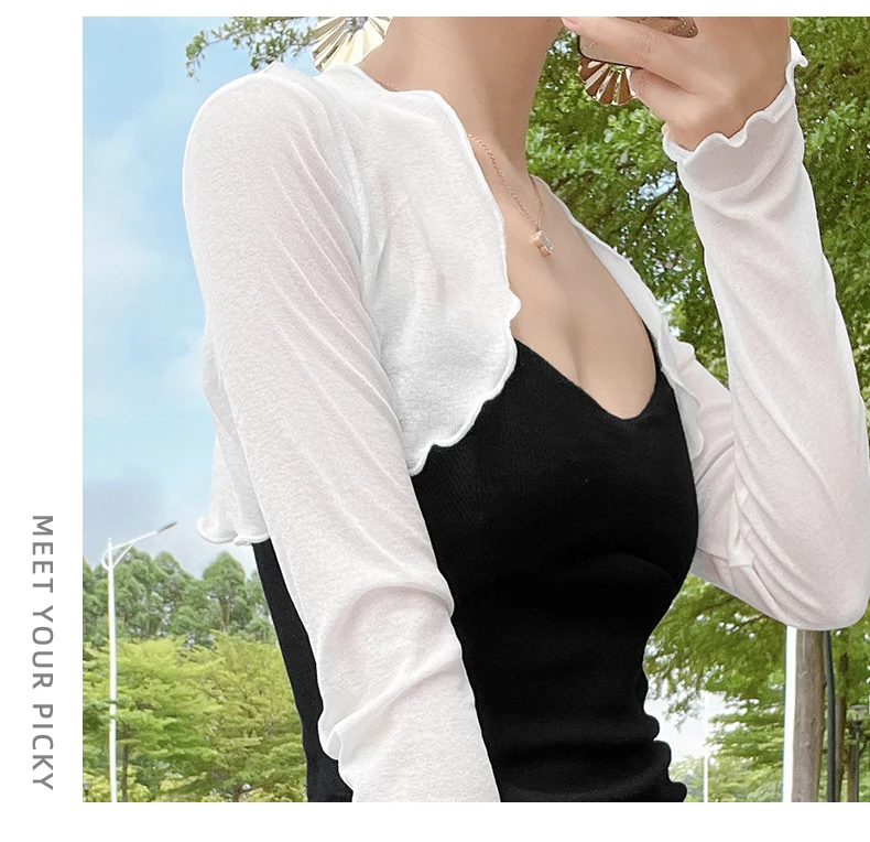 2025 Womens Ruffle Long Sleeve Cropped Evening Shrug Open Front Bolero Tops Cardigan Long Sleeve Short Coat Cover-ups