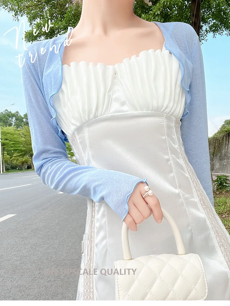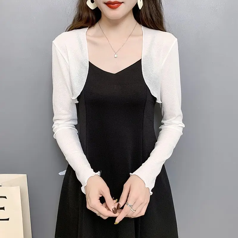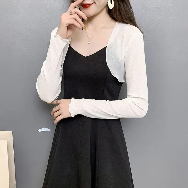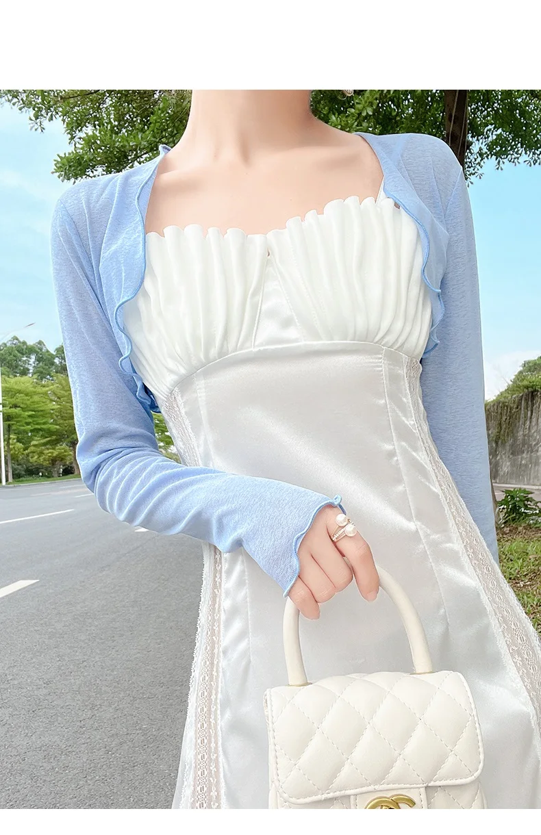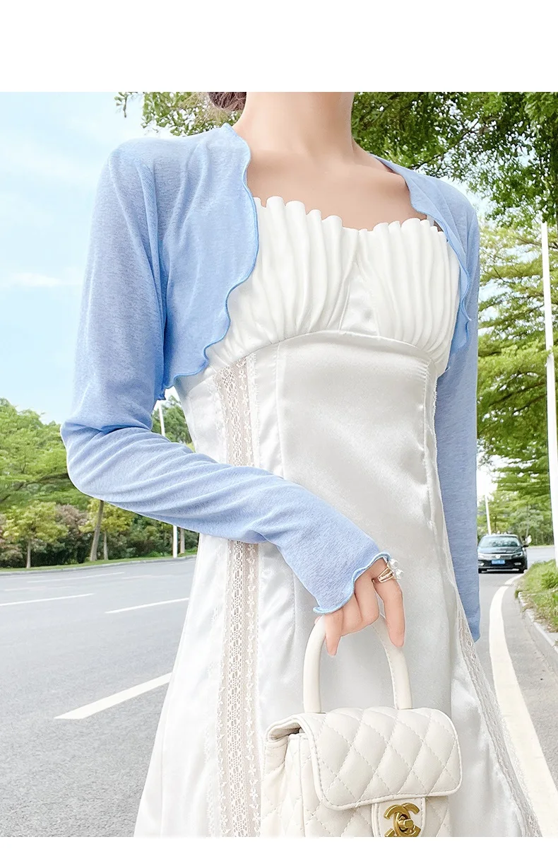 2025 Womens Ruffle Long Sleeve Cropped Evening Shrug Open Front Bolero Tops Cardigan Long Sleeve Short Coat Cover-ups