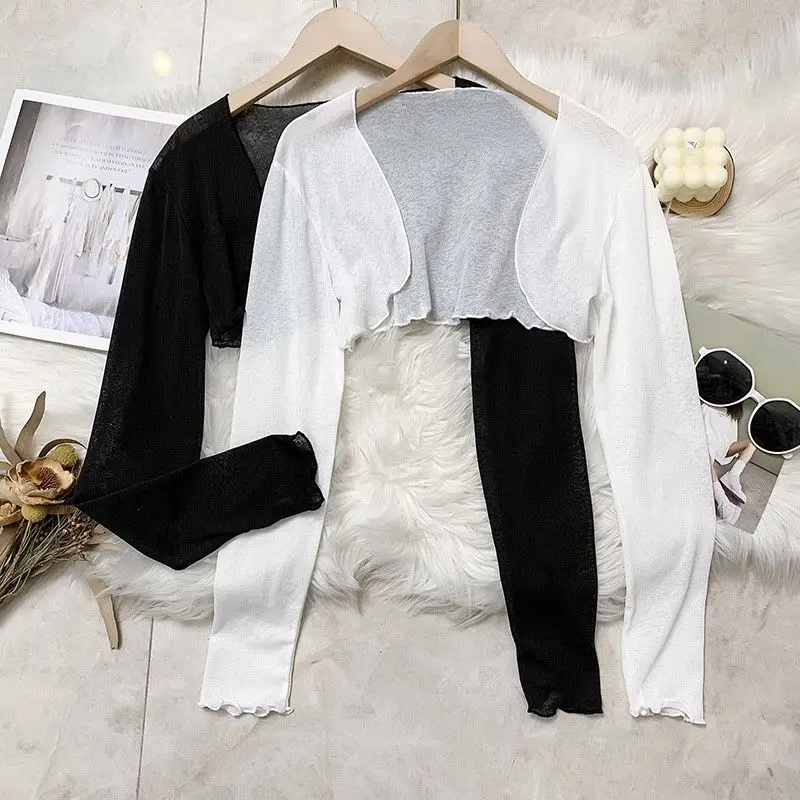 Lightweight Short Open Cardigan Baseball Print Top Women's Outerwear Summer Fashionable Sun Protection Versatile Mommy Outfit