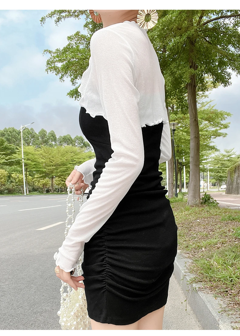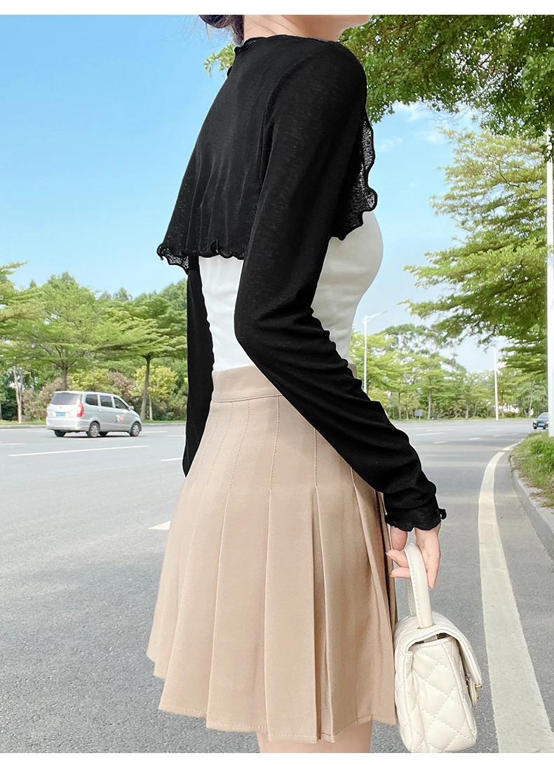 2025 Womens Ruffle Long Sleeve Cropped Evening Shrug Open Front Bolero Tops Cardigan Long Sleeve Short Coat Cover-ups