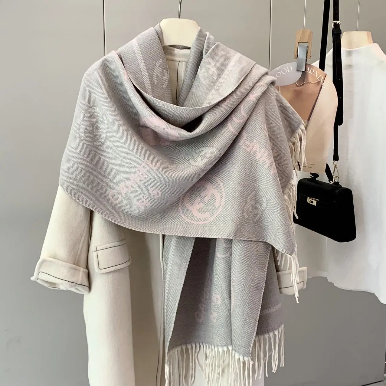Featuring a trendy letter print, this scarf adds a touch of sophistication to your outfit. Its neutral color palette ensures it pairs effortlessly with various ensembles.