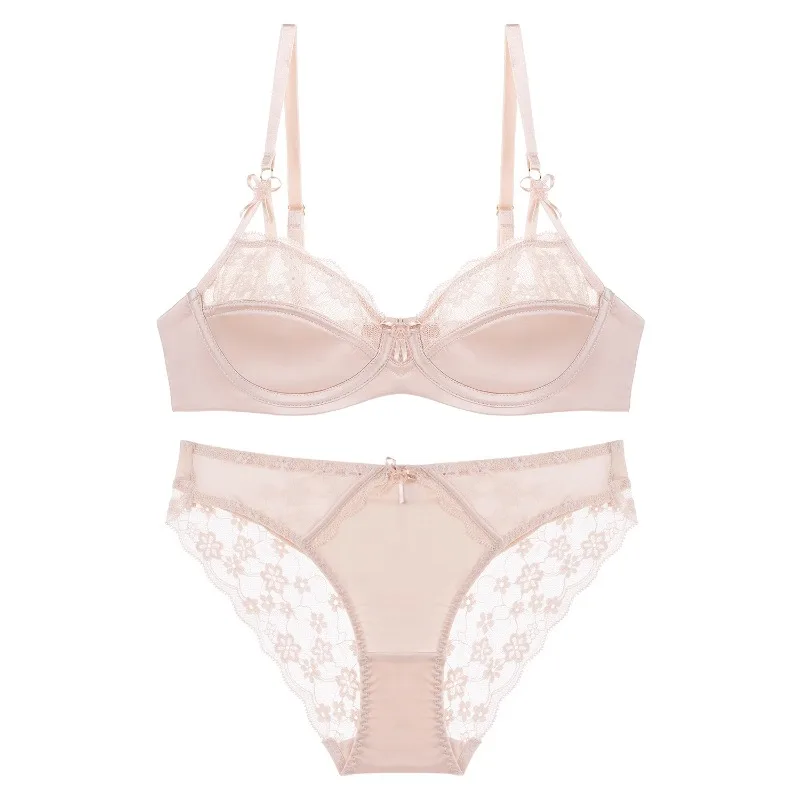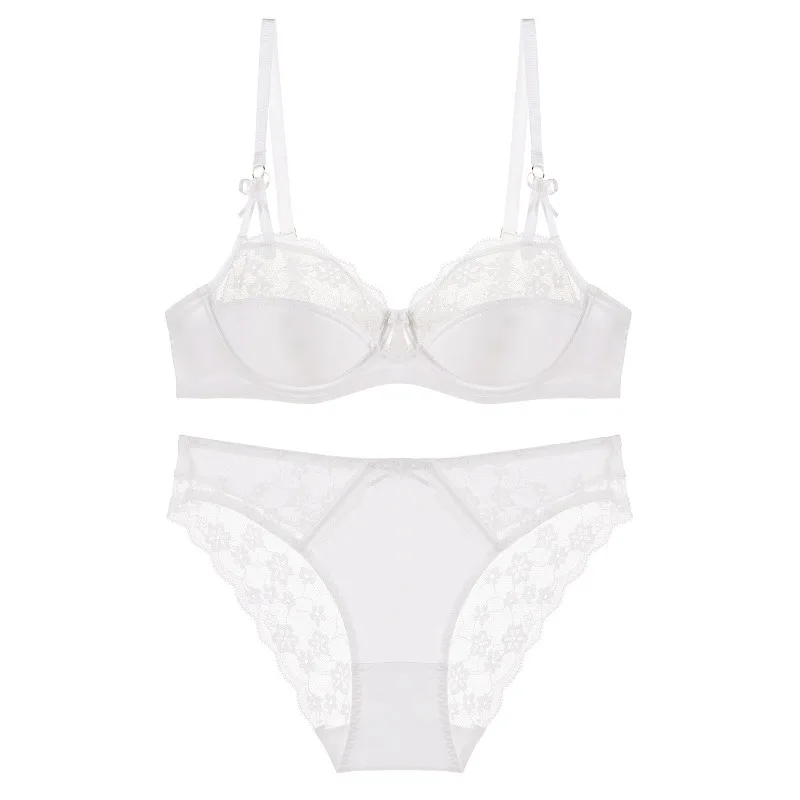 Summer Christmas Lingerie Set Large Bust Sexy Red Lace Bra Slimming Anti-Sagging, Romantic Gift Thin Cotton Underwear BANERDANNI