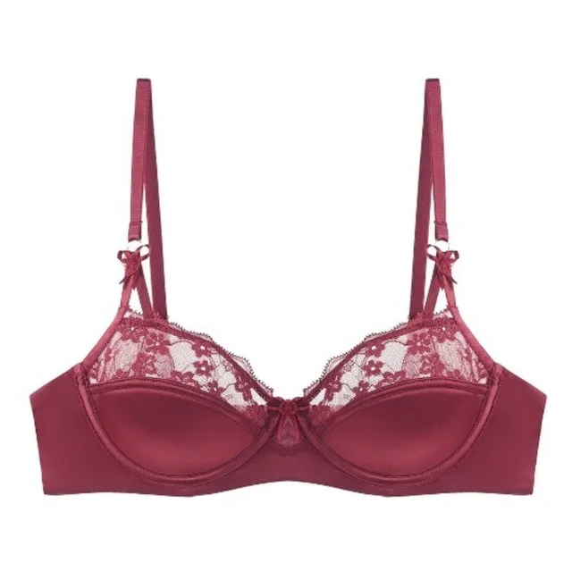 Summer Christmas Lingerie Set Large Bust Sexy Red Lace Bra Slimming Anti-Sagging, Romantic Gift Thin Cotton Underwear BANERDANNI