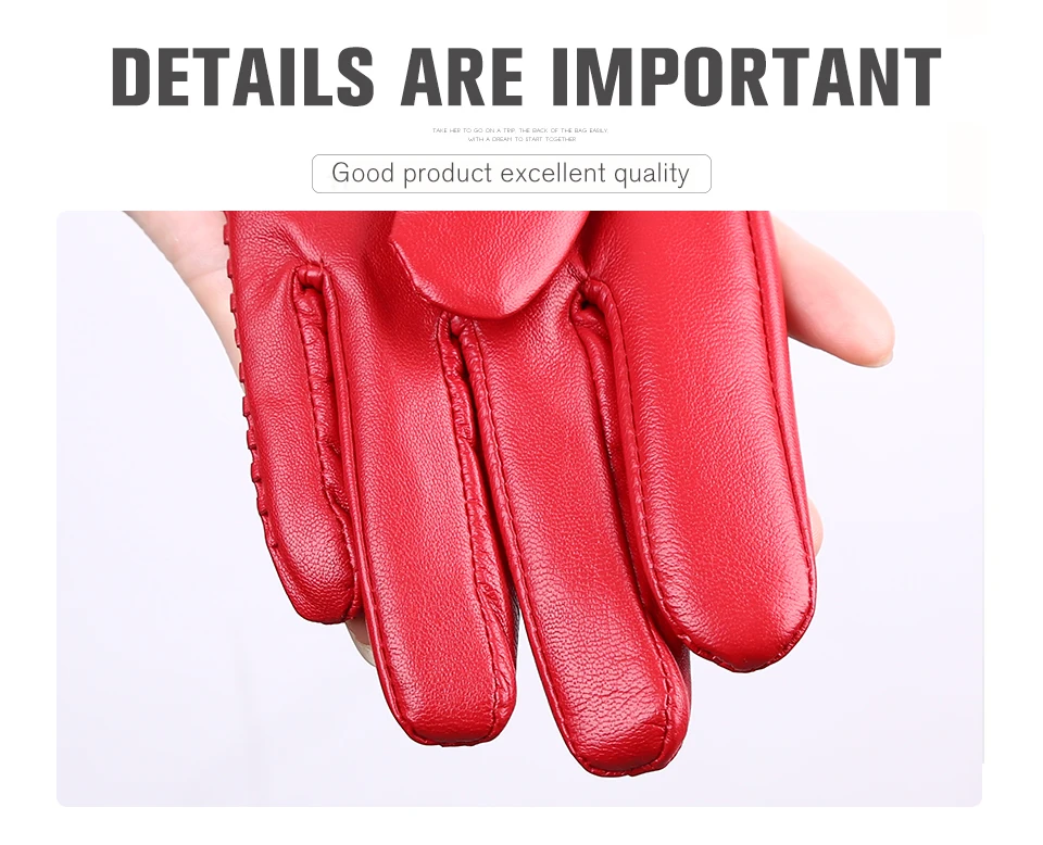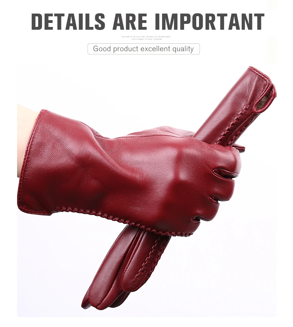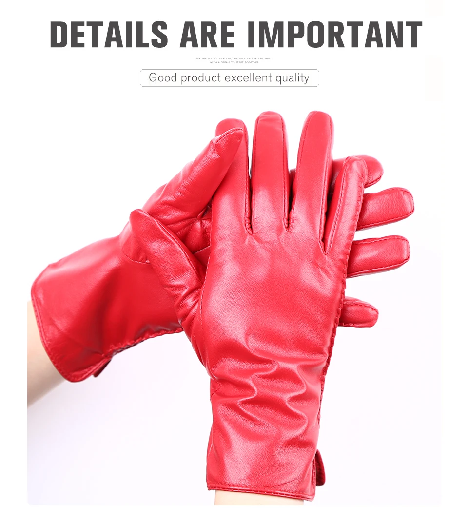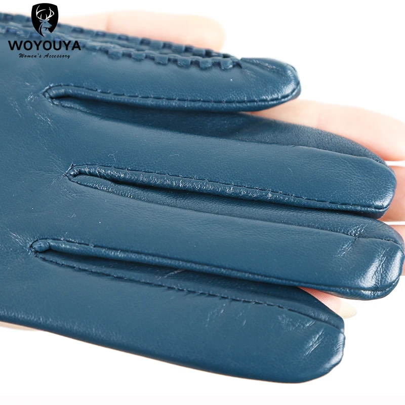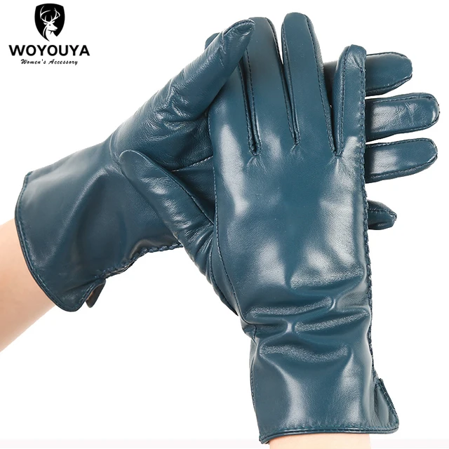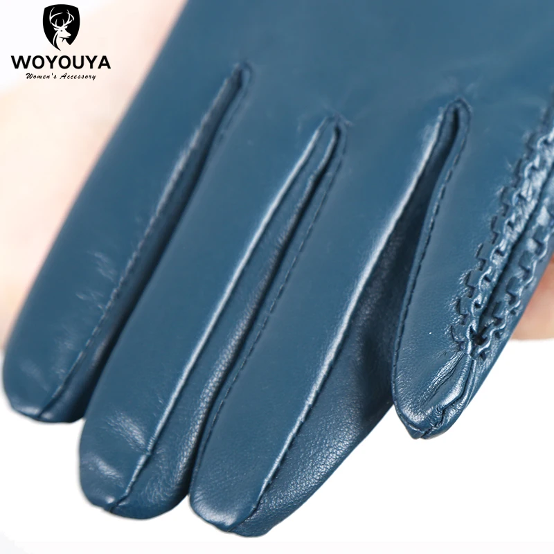 Women’s sheepskin gloves winter warmth plus velvet short thin driving female color leather gloves