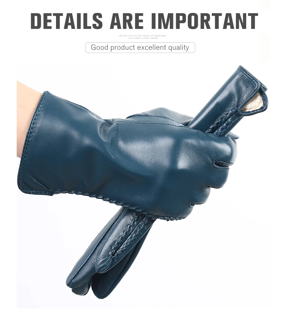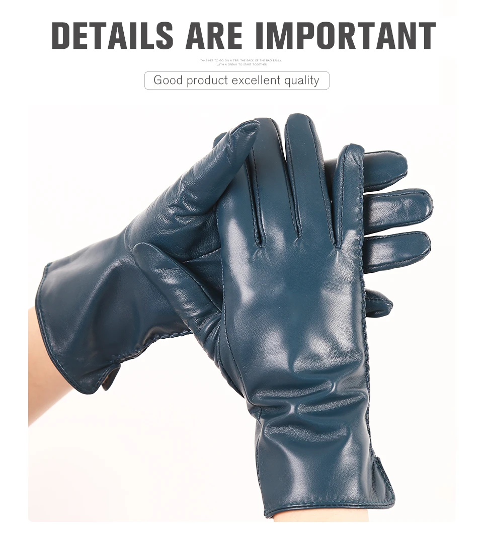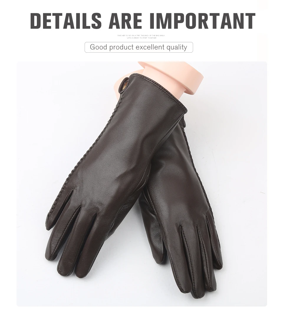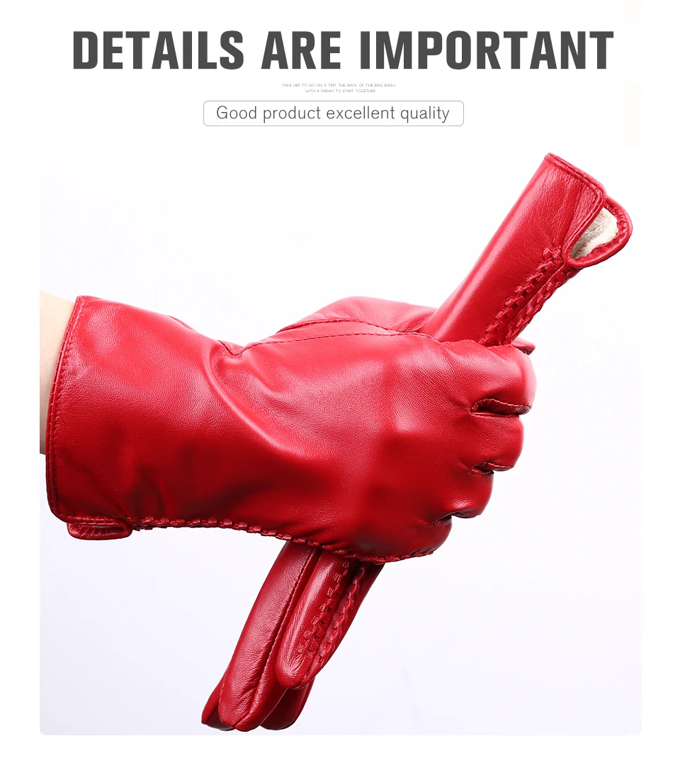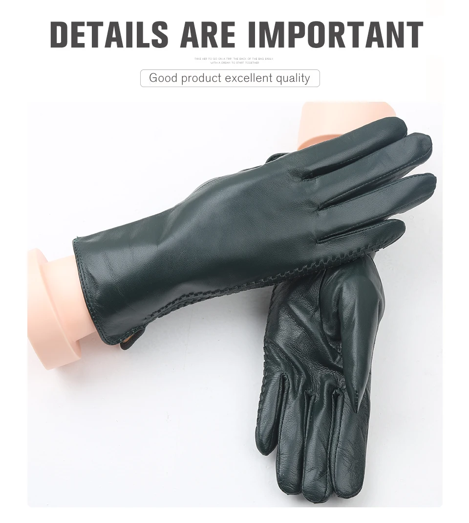 Women’s sheepskin gloves winter warmth plus velvet short thin driving female color leather gloves