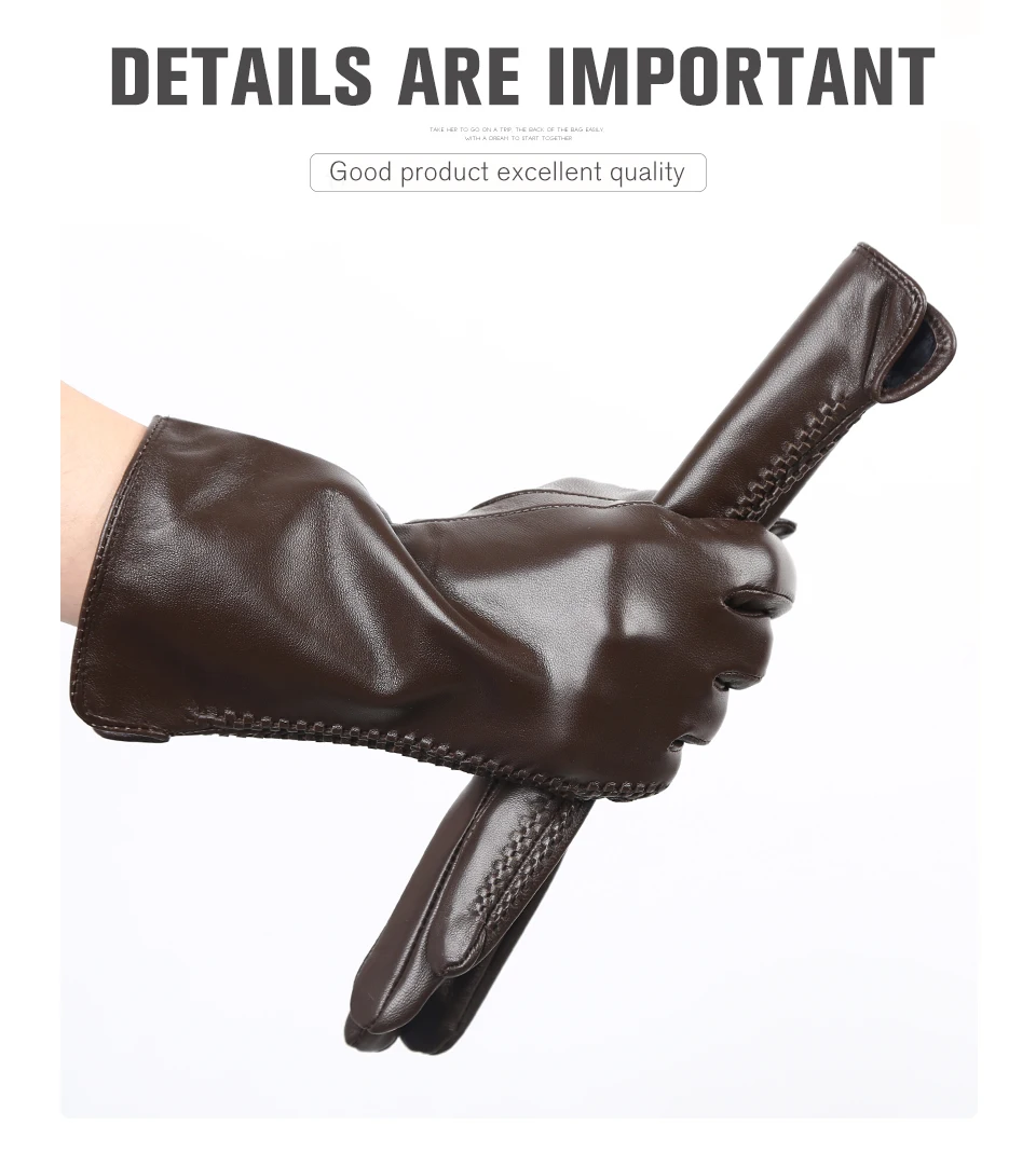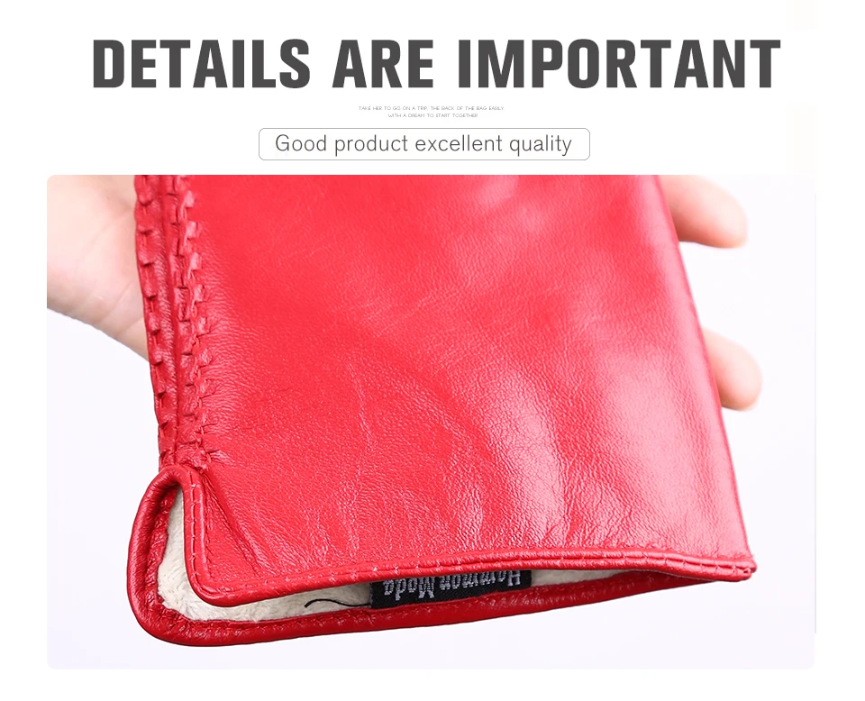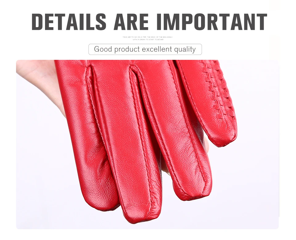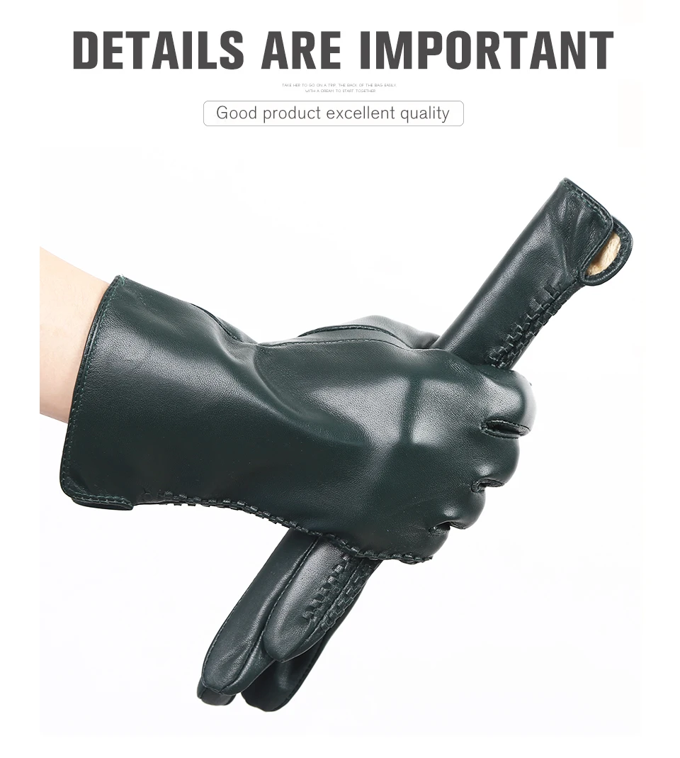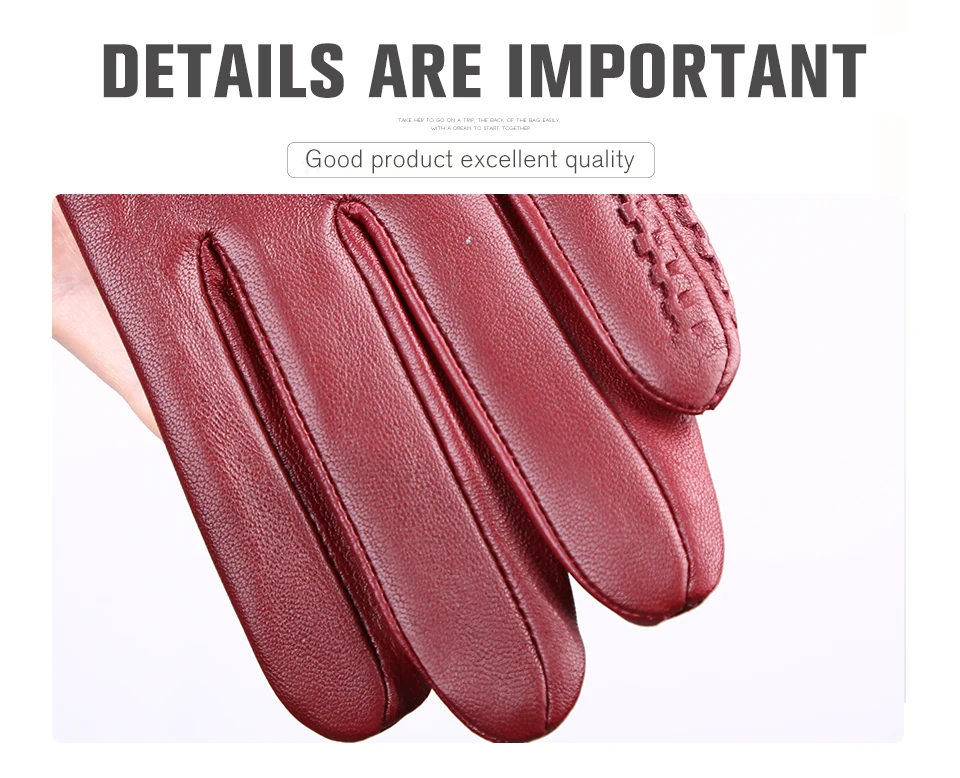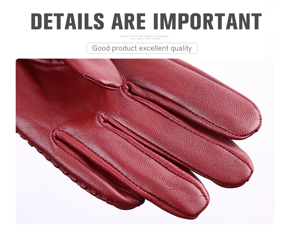 Women’s sheepskin gloves winter warmth plus velvet short thin driving female color leather gloves