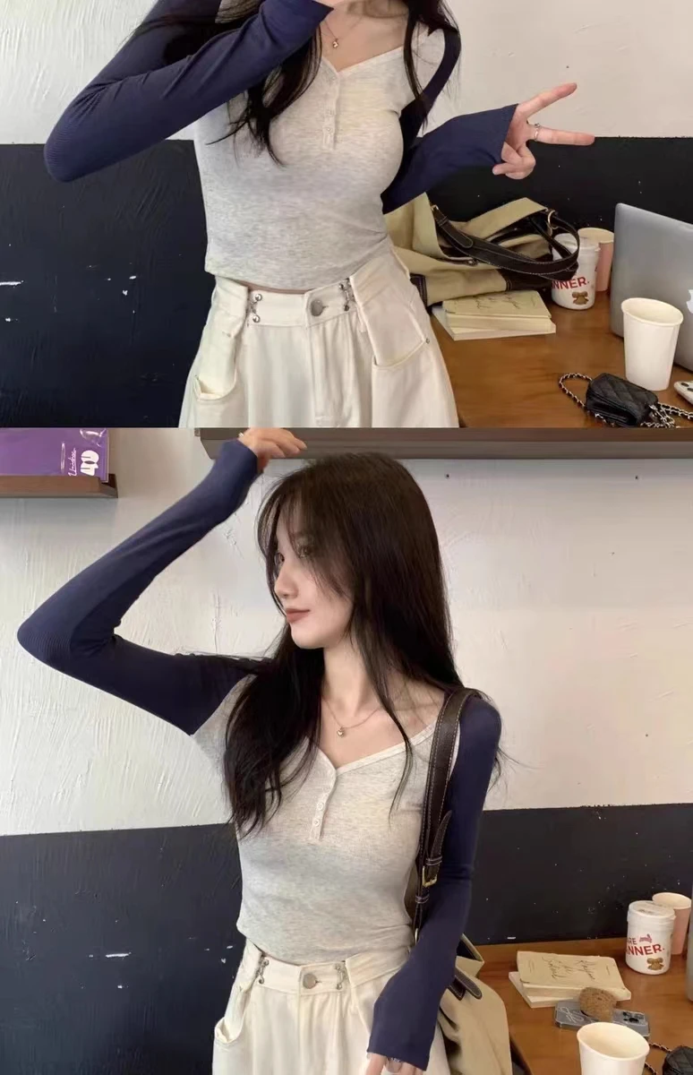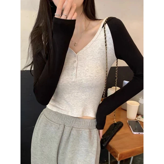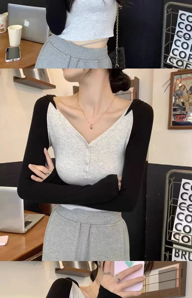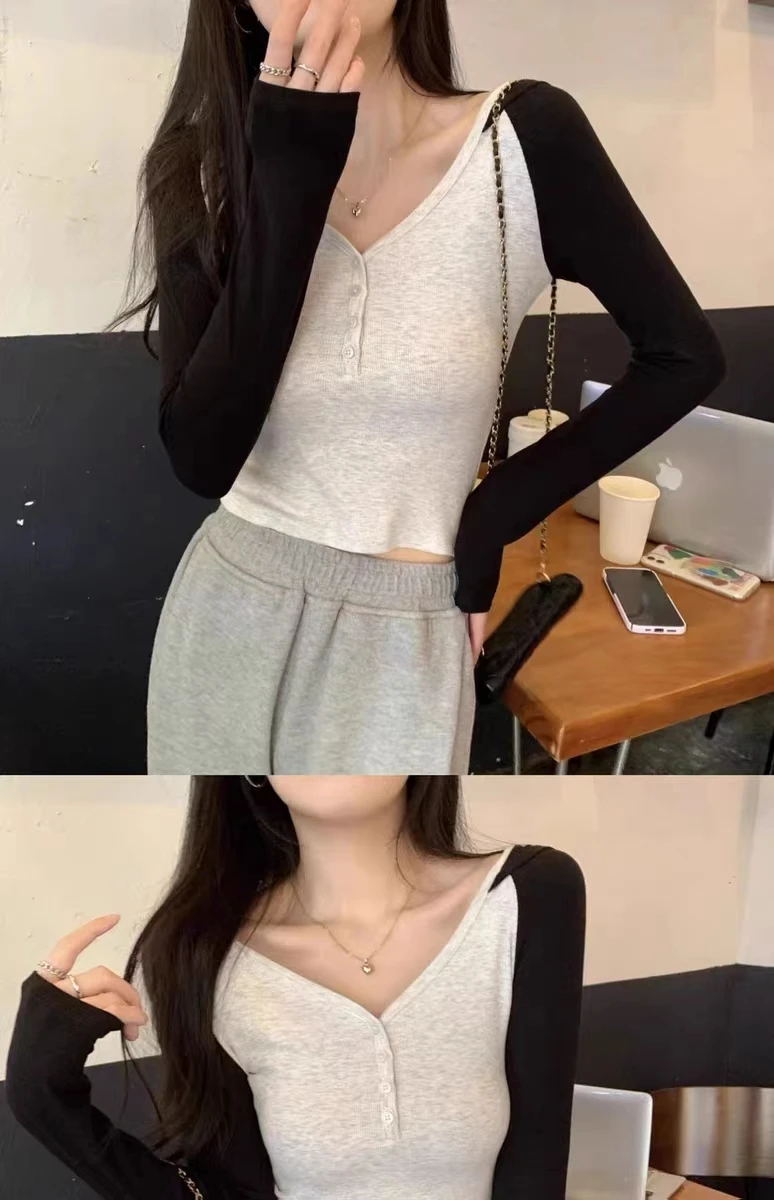 Featuring a bold color block design and a V-neckline, this t-shirt offers a trendy and stylish look.