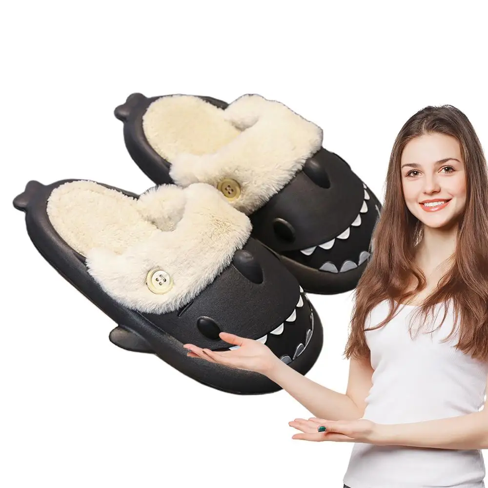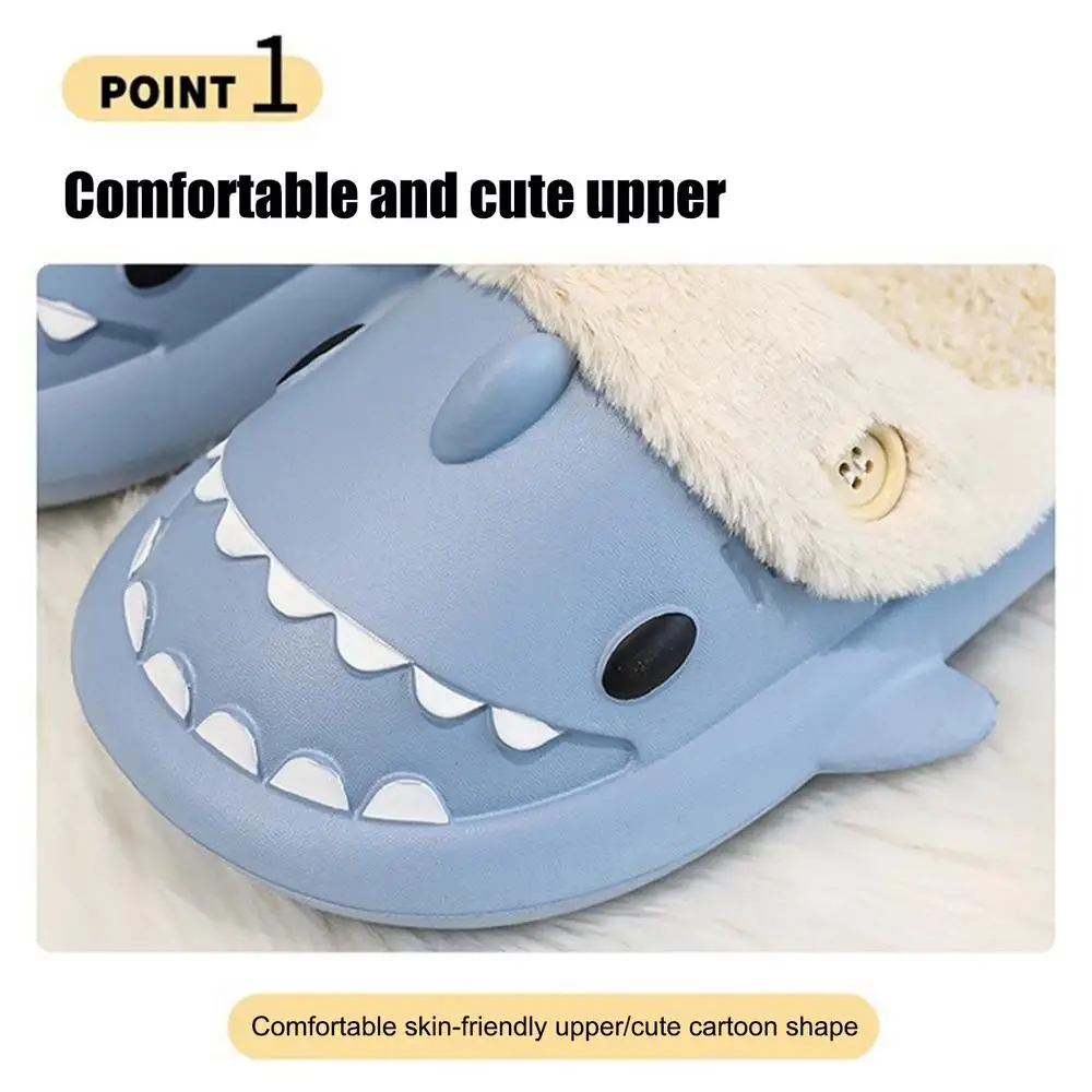 1.Aesthetic Appeal: Looking for something different? Our Winter Slippers For Women are designed in a cartoon shark shape with eye-catching bright colors, adding a touch of cuteness and fun to your feet. A unique feature that sets you apart.