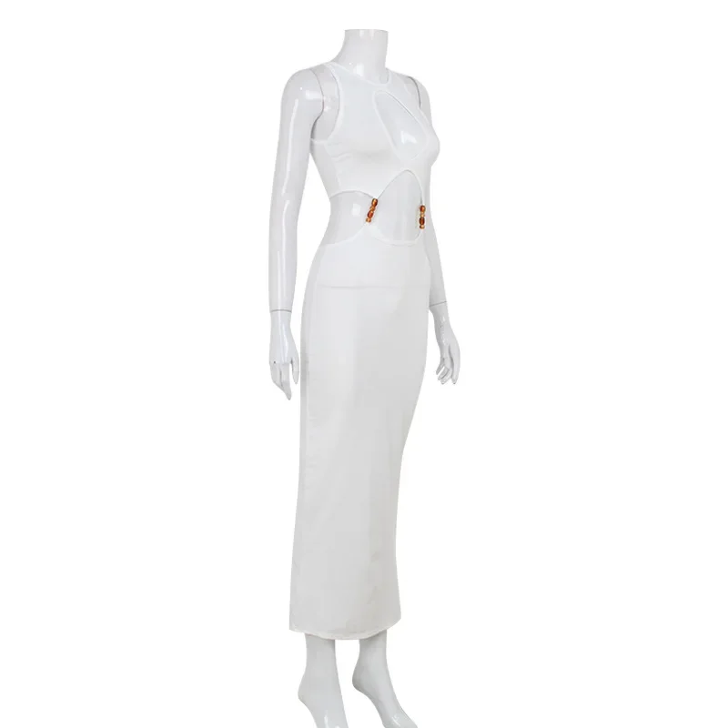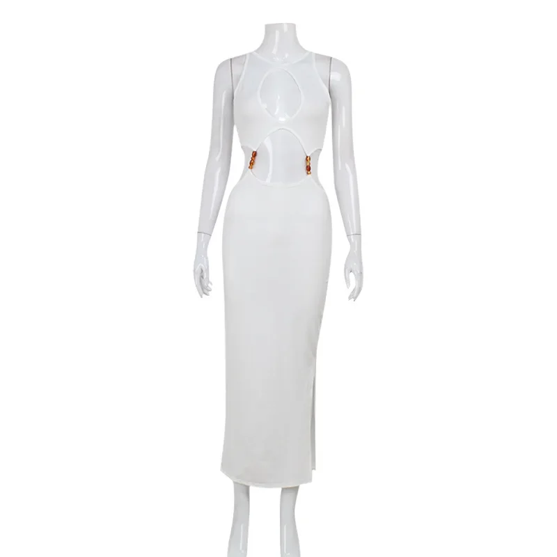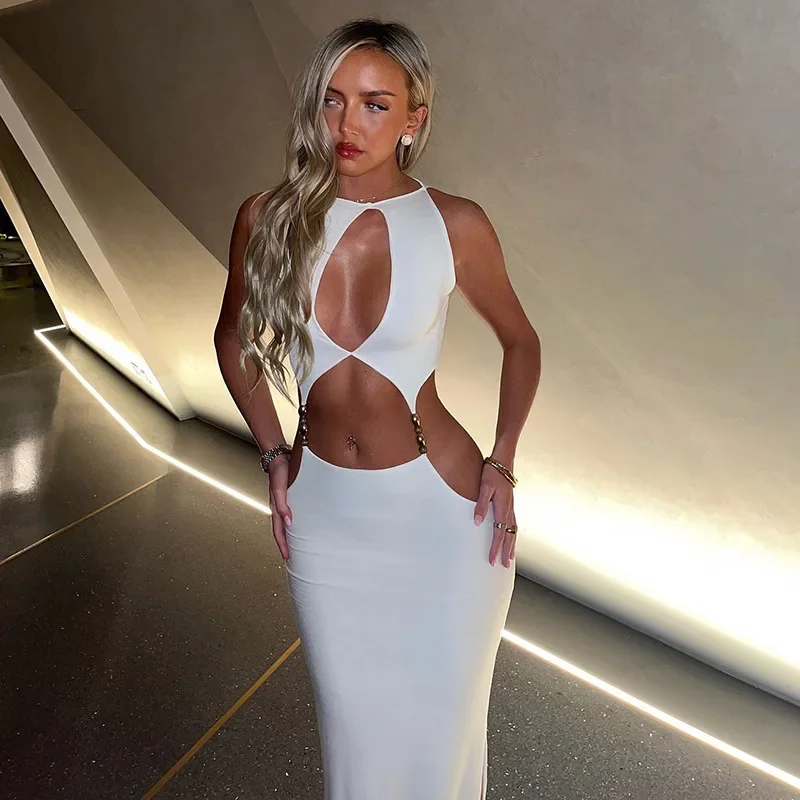Women’s Solidchic Hollow-out Halter Dress Off-shoulder Backless High Waist Slim Long Dresses 2026