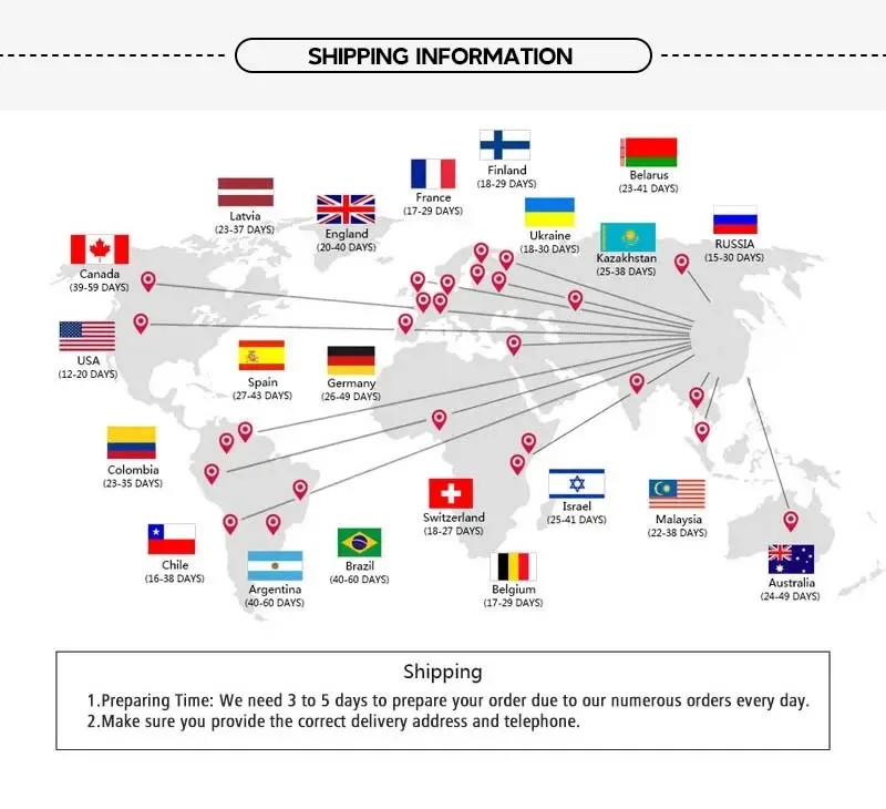Estimated delivery time : 5 – 15 working days