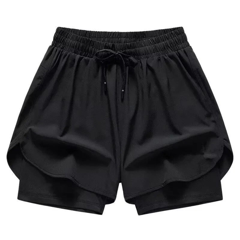 Women's Sporty Three-quarter Length Yoga Pants Breathable Quick-drying Running Training Fitness Shorts with Inner Lining