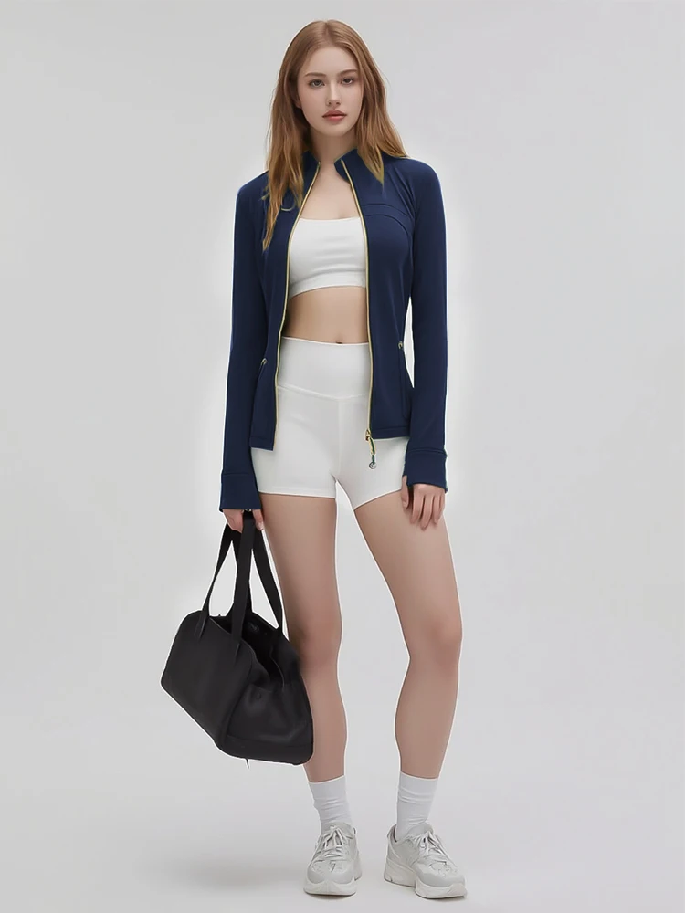 Women’s Stand Collar Yoga Jacket Zipper Gym Workout Long Sleeve Top, Casual Sporty Style, Perfect