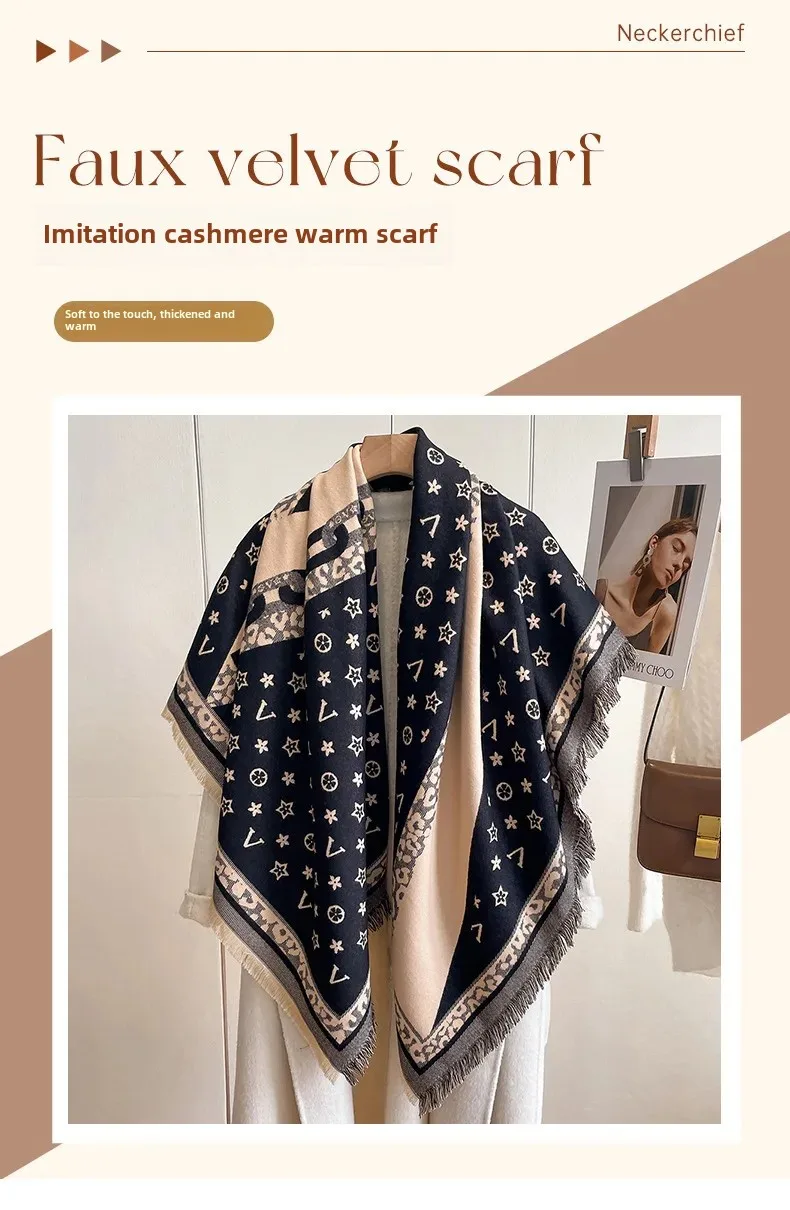 Women’s Star Letter Cross-Border E-Commerce Fake Wool Double-Sided Shawl Thickened Large Square