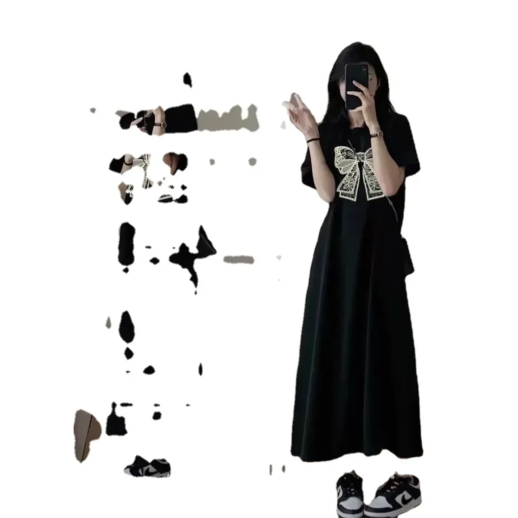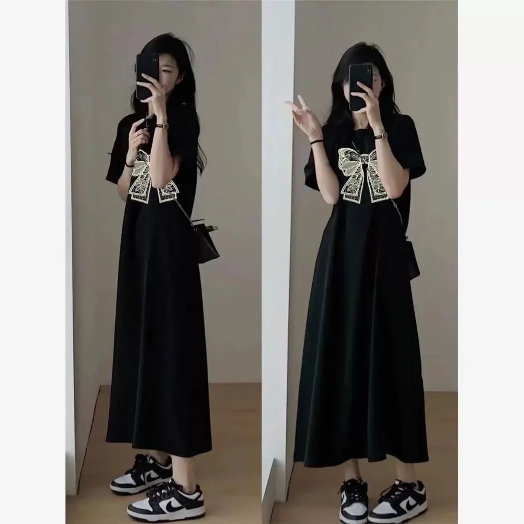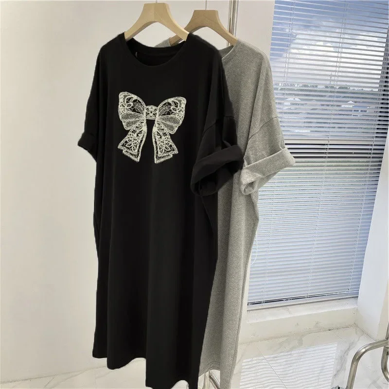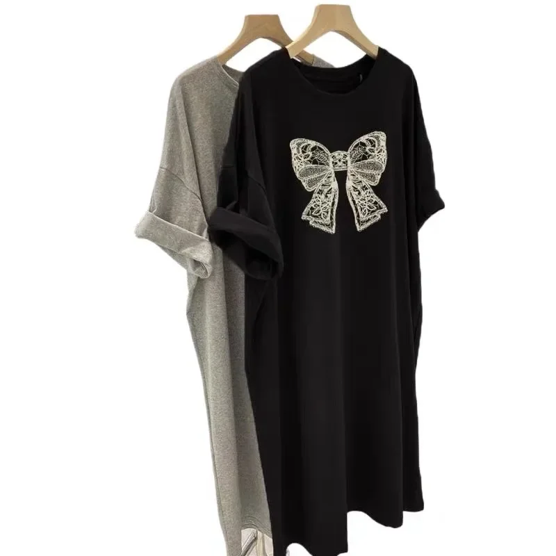 Be the first to review “Women’s Summer Thin Cotton Milk Silk Dress Lazy Printed Bow Design Medium-length Loose-fit Slimming”