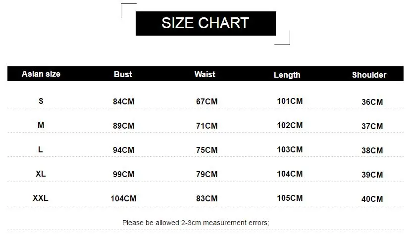 | size_info | {"sizeInfoList":[{"length":{"cm":"84","inch":"33.07"},"size":"S","vid":-1},{"length":{"cm":"89","inch":"35.04"},"size":"M","vid":-2},{"length":{"cm":"94","inch":"37.01"},"size":"L","vid":-3},{"length":{"cm":"99","inch":"38.98"},"size":"XL","vid":-4},{"length":{"cm":"104","inch":"40.94"},"size":"XXL","vid":-5}]} |