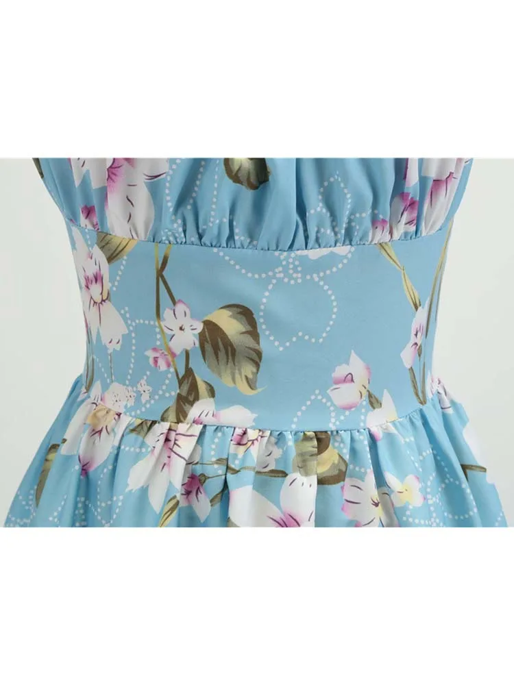 Y2k Vintage Blue Floral Dress Women Elegant Party Fashion Summer Puff Sleeve Sexy Split Long Dresses for Womens Aesthetic 2024