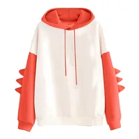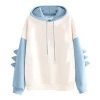 Women’s Solid Color Contrasting Dinosaur Loose Casual Hoodie