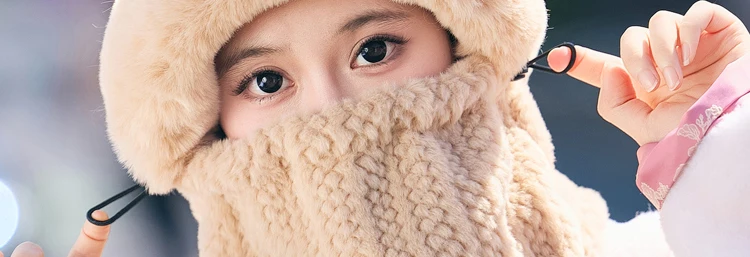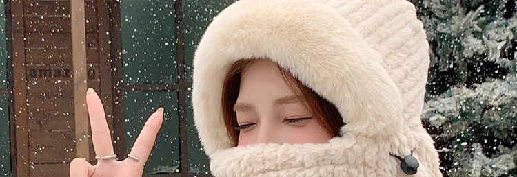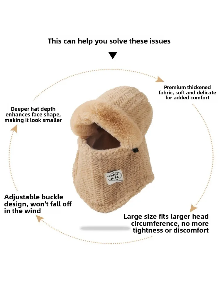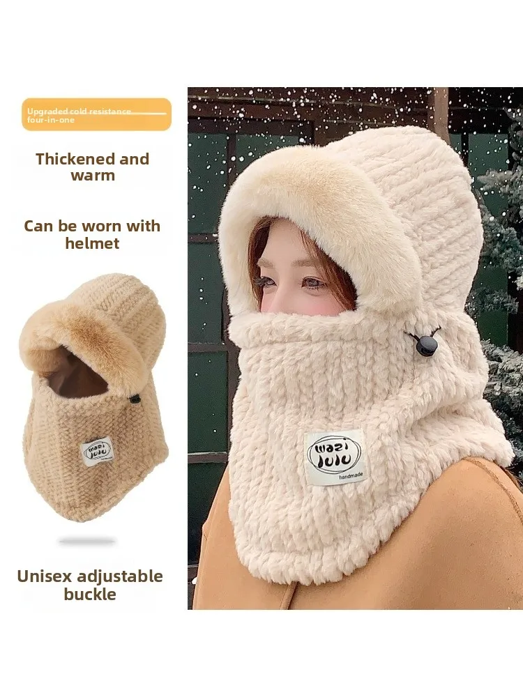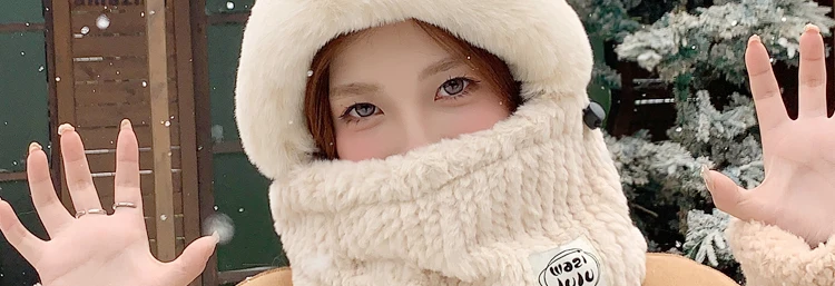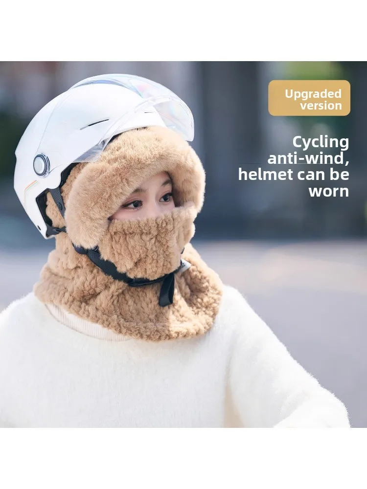 Women's Winter Hat with Fce Thi Outdoor Cycling Scarf Inteated Face Mask Windproof Warm Ear Protection Korean Sle