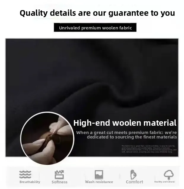 • Thickened Woolen Material : Crafted from thickened woolen material, this coat offers exceptional warmth and comfort during the colder months.