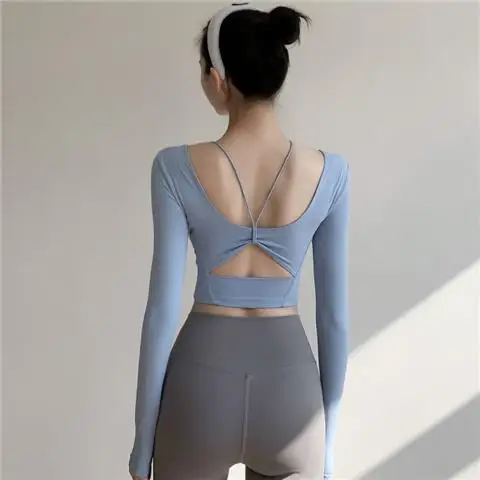 Crafted from 100% polyester fiber, this yoga top offers durability and comfort for your fitness routine.