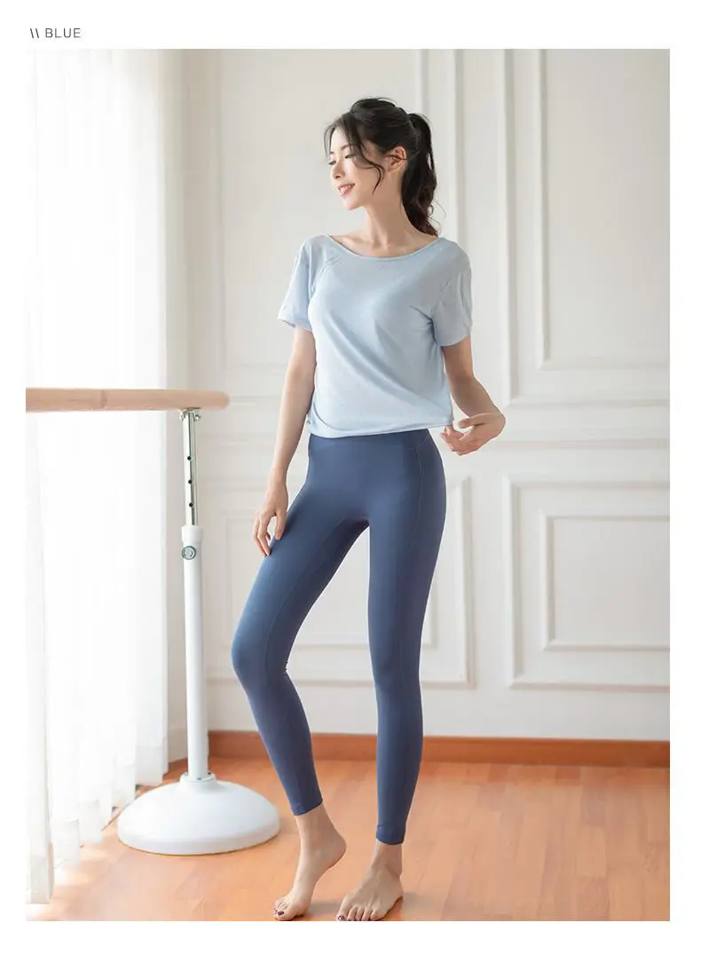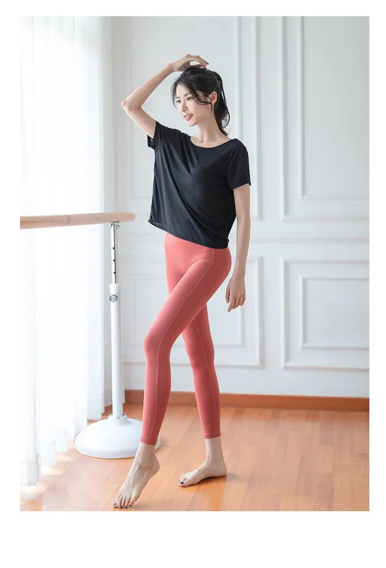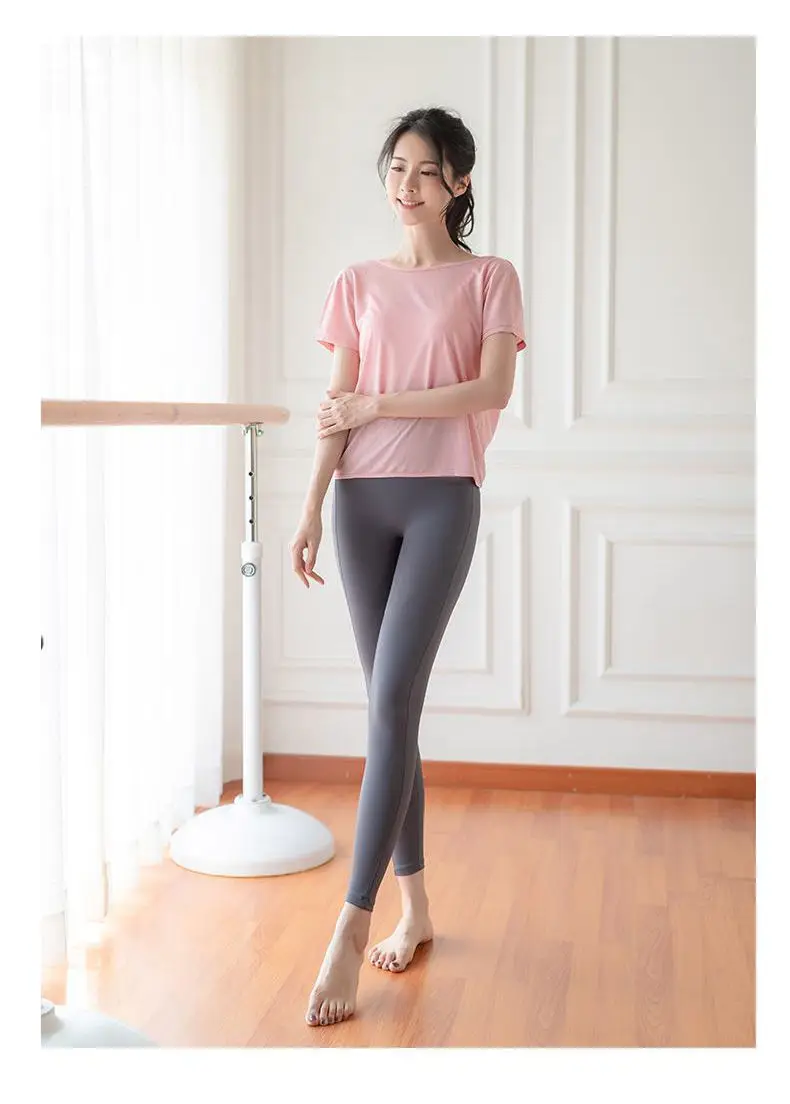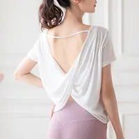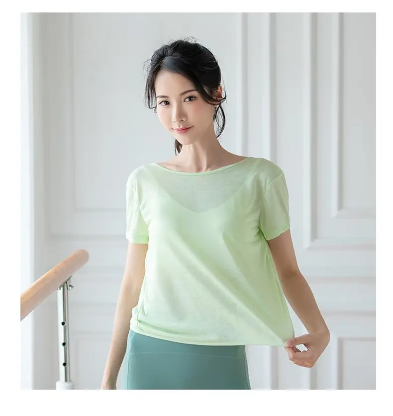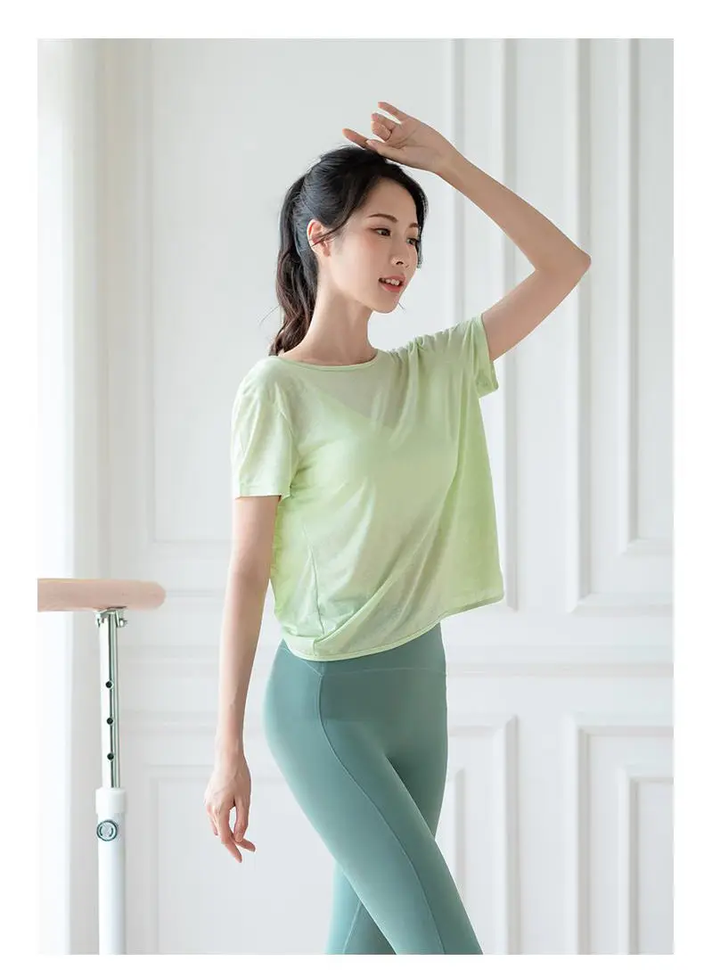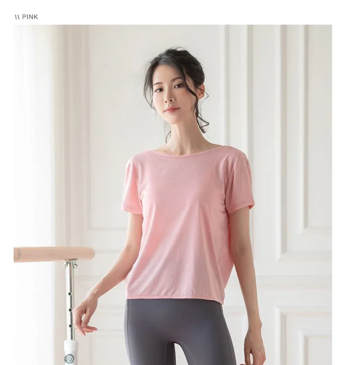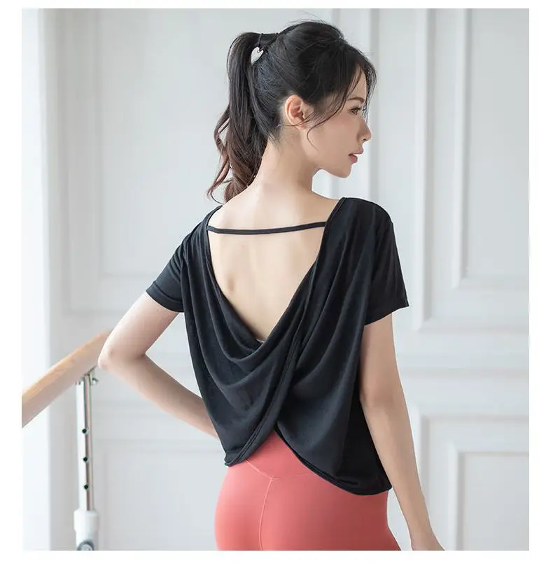 This yoga top features a sporty style, perfect for running and fitness activities. Its loose fit ensures comfort during intense workouts.