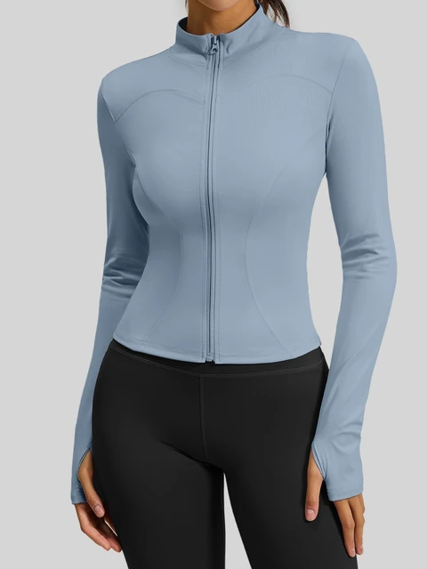 Women’s Zip – Up Sports Jacket with Stand – Up Collar, Slim Fit for Workout & Yoga