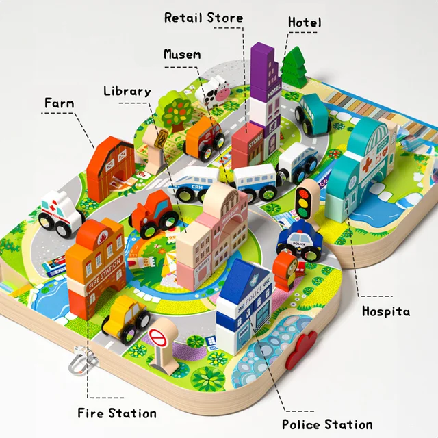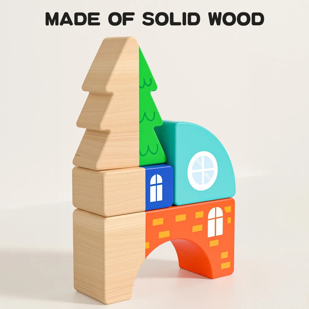 Wooden Building Blocks City Magnetic Assembly Toy Set *1