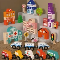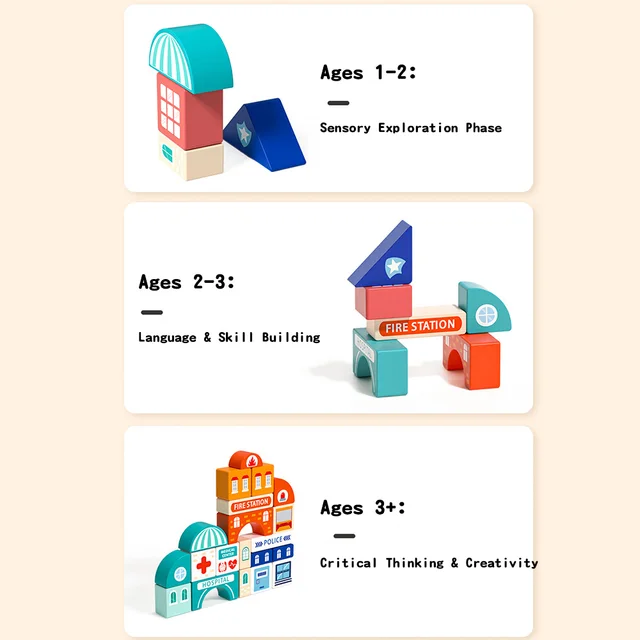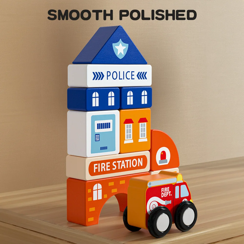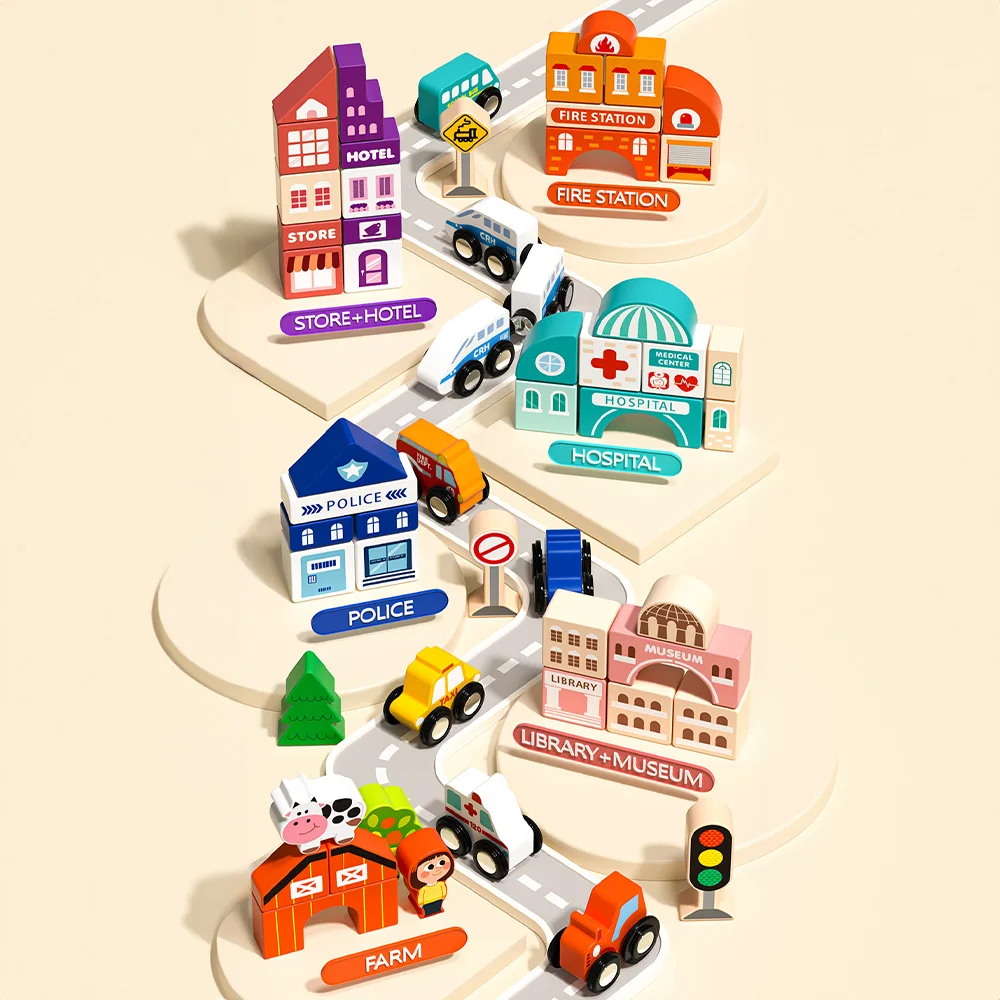 Wooden Building Blocks City Construction Building Sets Kids Montessori Stacking Blocks Educational Toy for Birthday Xmas Gift