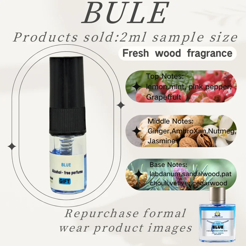 Woody-scented perfume sample with long-lasting fragrance, rich fragrance type, for men6 bottele 2ml man and women. Perfume 2ml