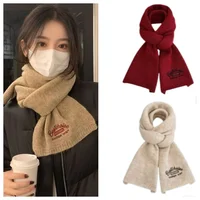 Winter Knitted Solid Color Trendy Korean Thickened Warm Annual Meeting Handheld Embroidery Style Scarf.