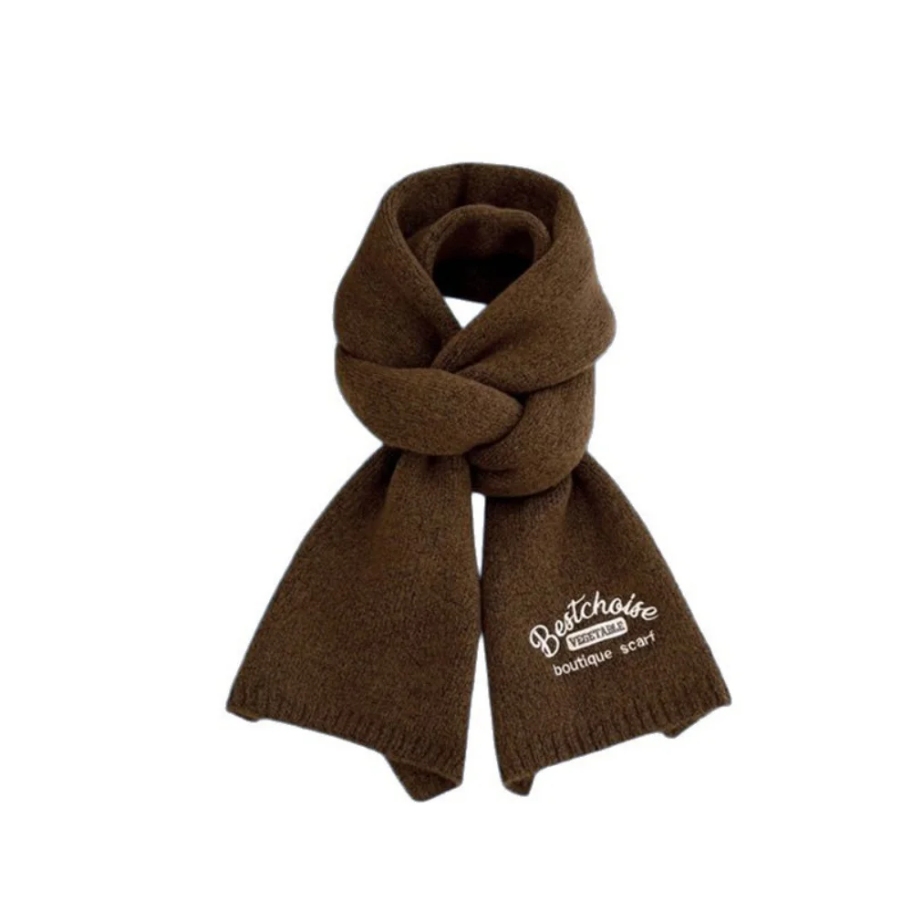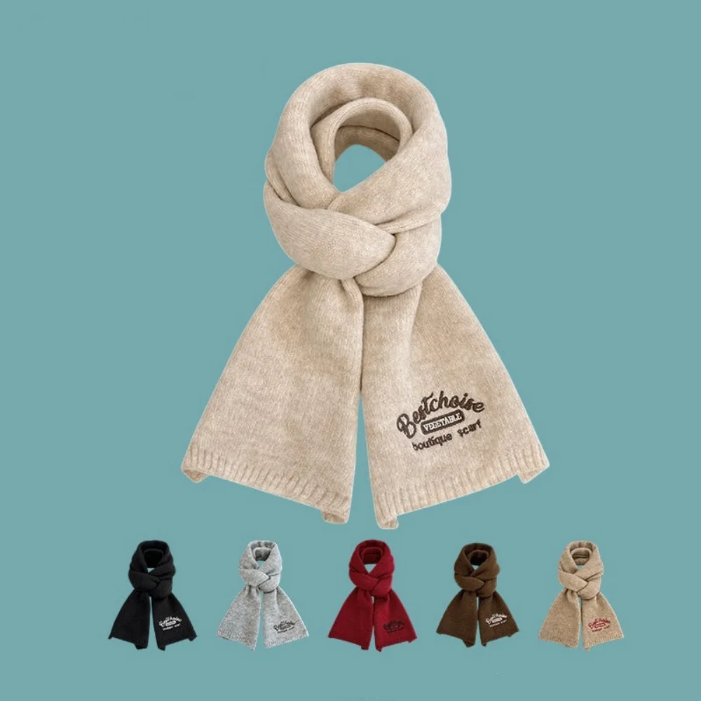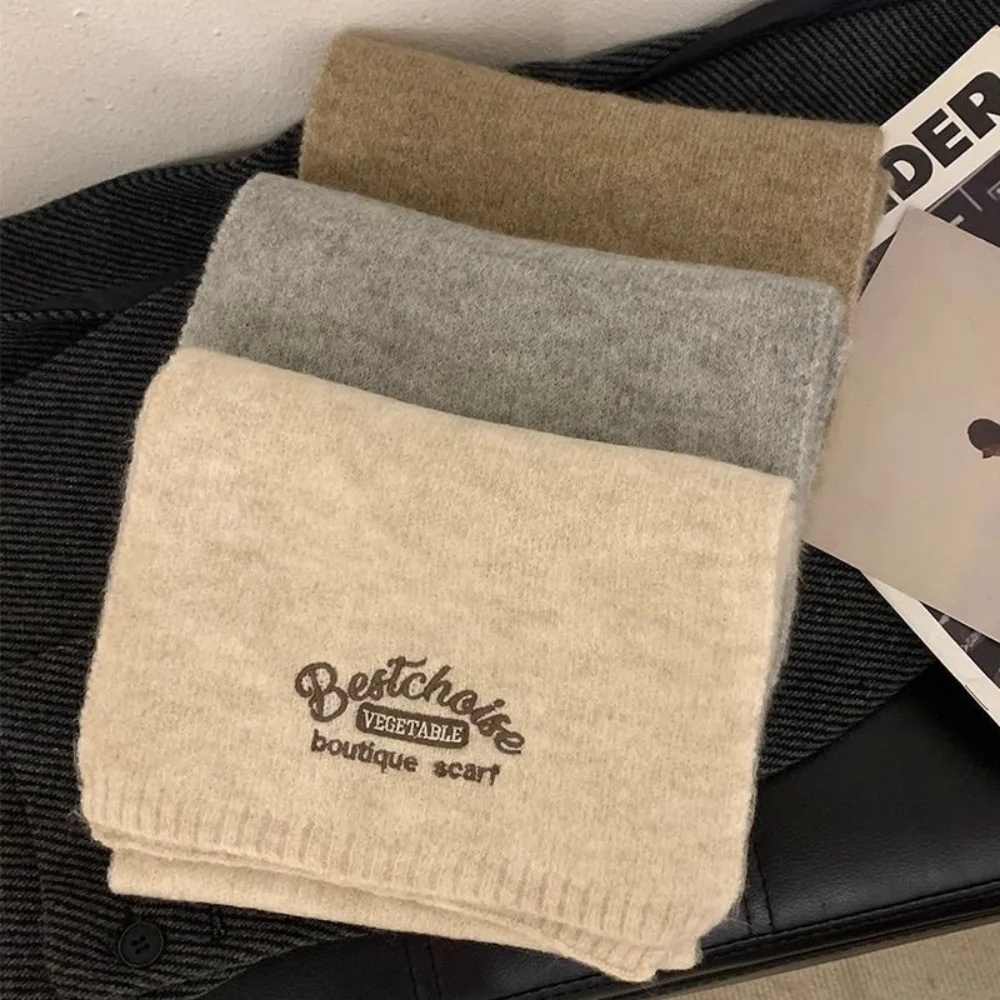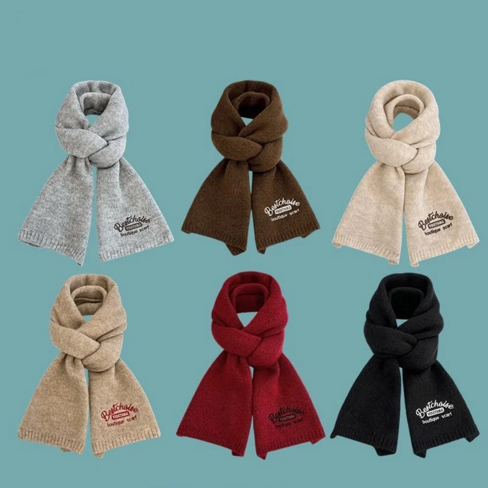Stay stylish and warm this winter with our stylish Korean style knitted scarves! Made from a thick, soft wool-blend fabric, this scarf provides superior warmth and comfort on colder days. The solid color design easily pairs with any outfit, while the embroidered lettering details add unique personality. Perfect for everyday wear or a thoughtful gift.