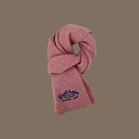 Winter Knitted Solid Color Trendy Korean Thickened Warm Annual Meeting Handheld Embroidery Style Scarf.