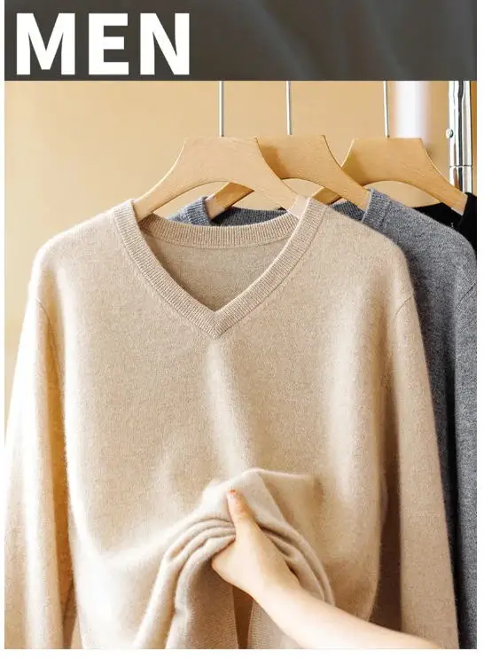 Wool Men's Sweaters V-neck Pullovers Cashmere Knitting Hot Sale Spring Autumn Sweaters Knitwear High Quality Jumpers Clothes