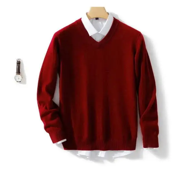 Wool Men’s Sweaters V-neck Pullovers Cashmere Knitting Hot Sale Spring Autumn Sweaters Knitwear
