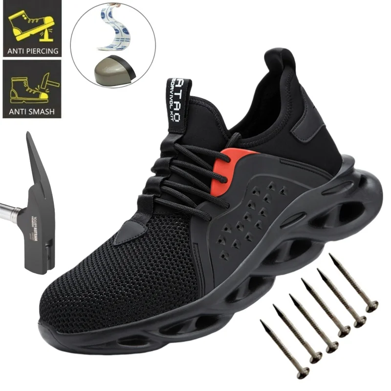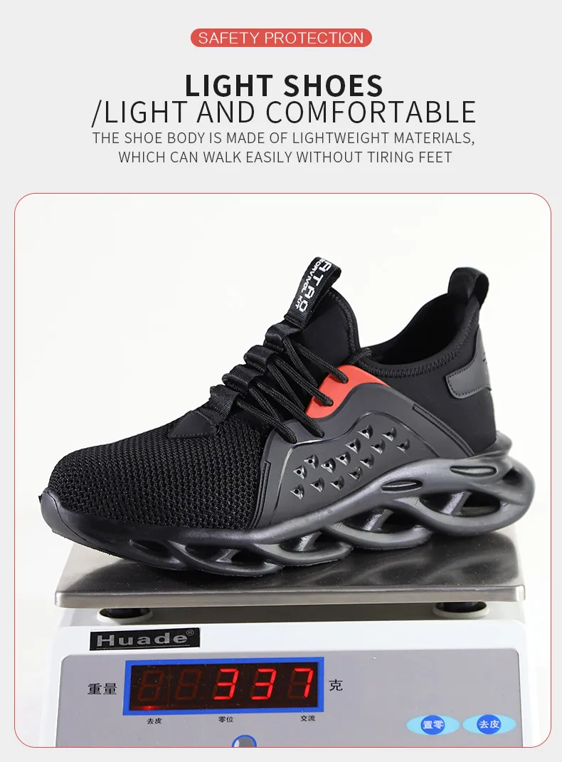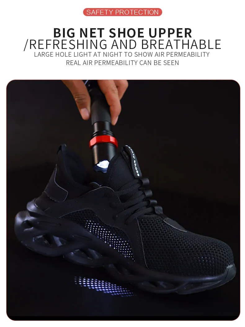 Work Safety Shoes Men Lightweight Indestructible Work Sneakers Security Steel Toe Shoes Safety Protective Boots Black Size36-48