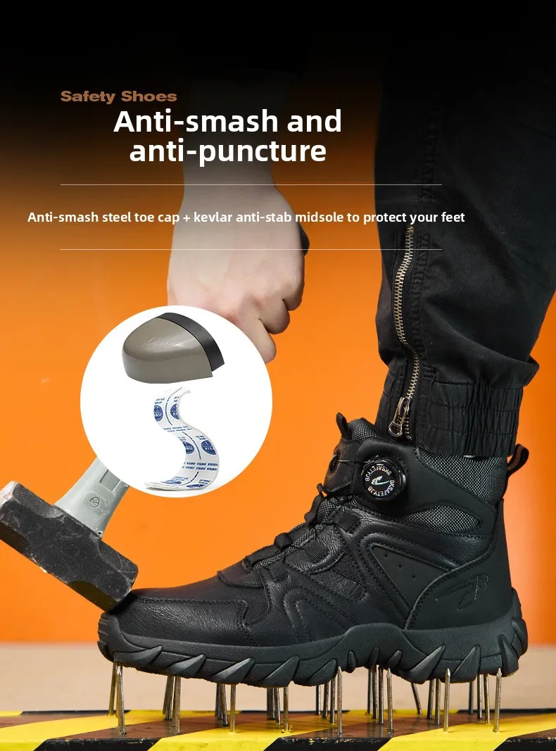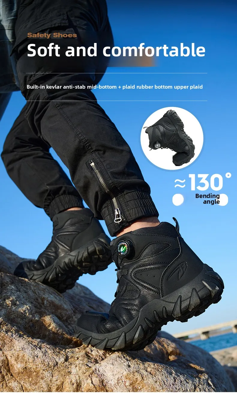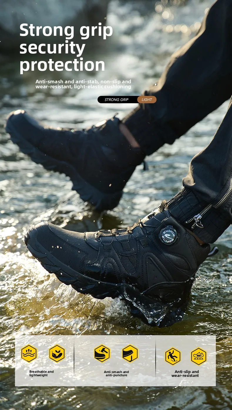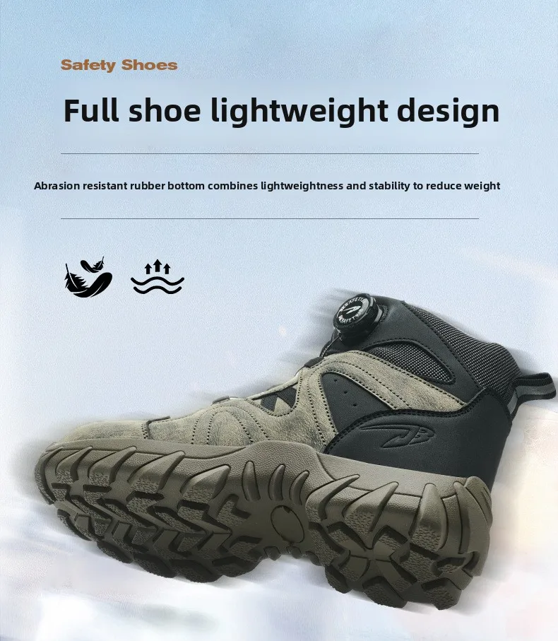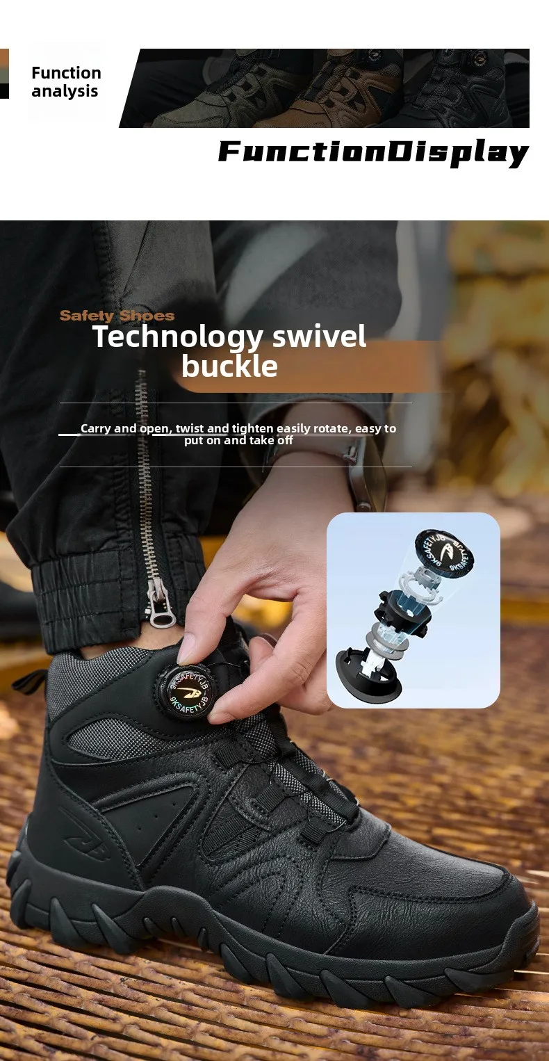 Rotary Buckle Work Boots Safety Steel Toe Shoes Men Breathable Safety Shoes Brand Indestructible Shoes Puncture-Proof work Shoes