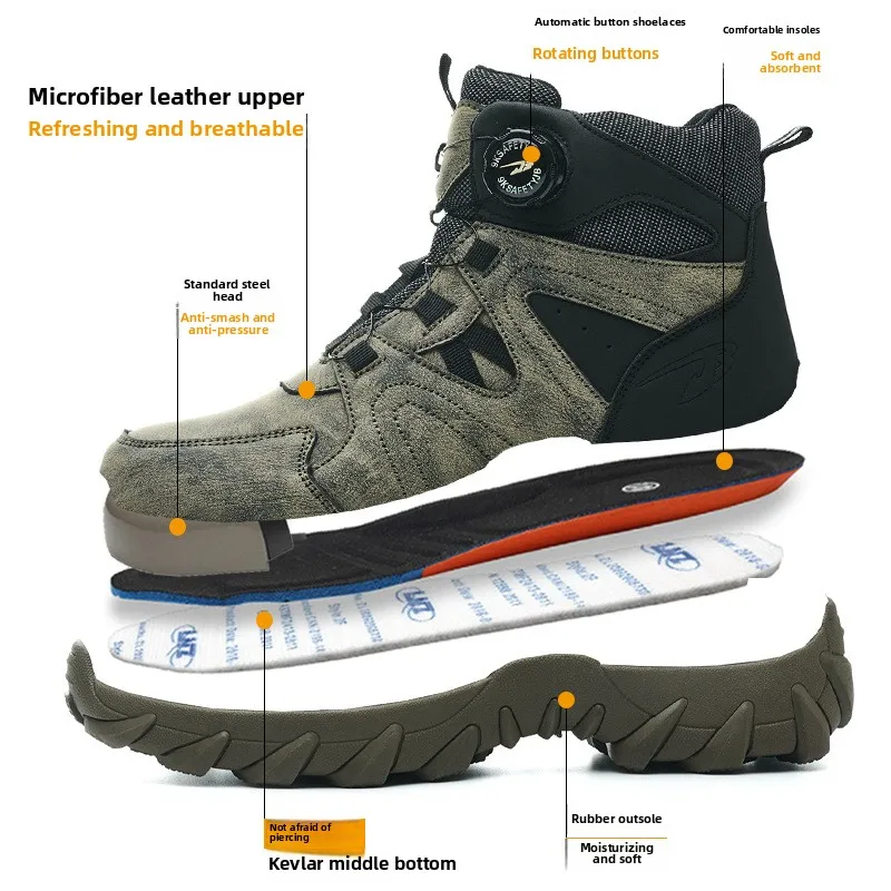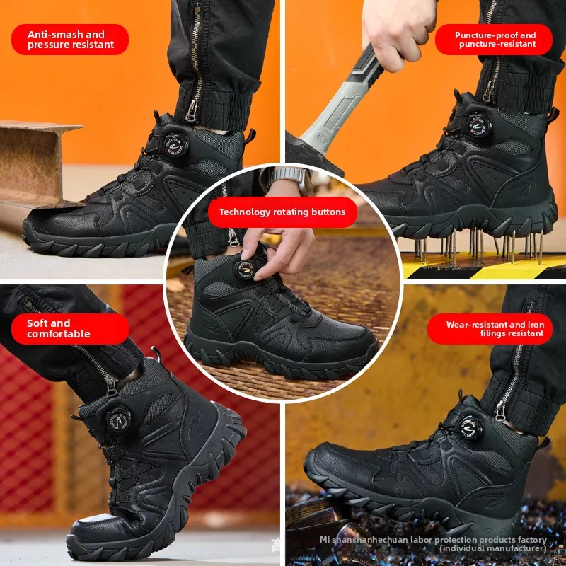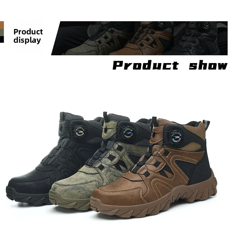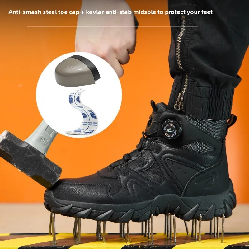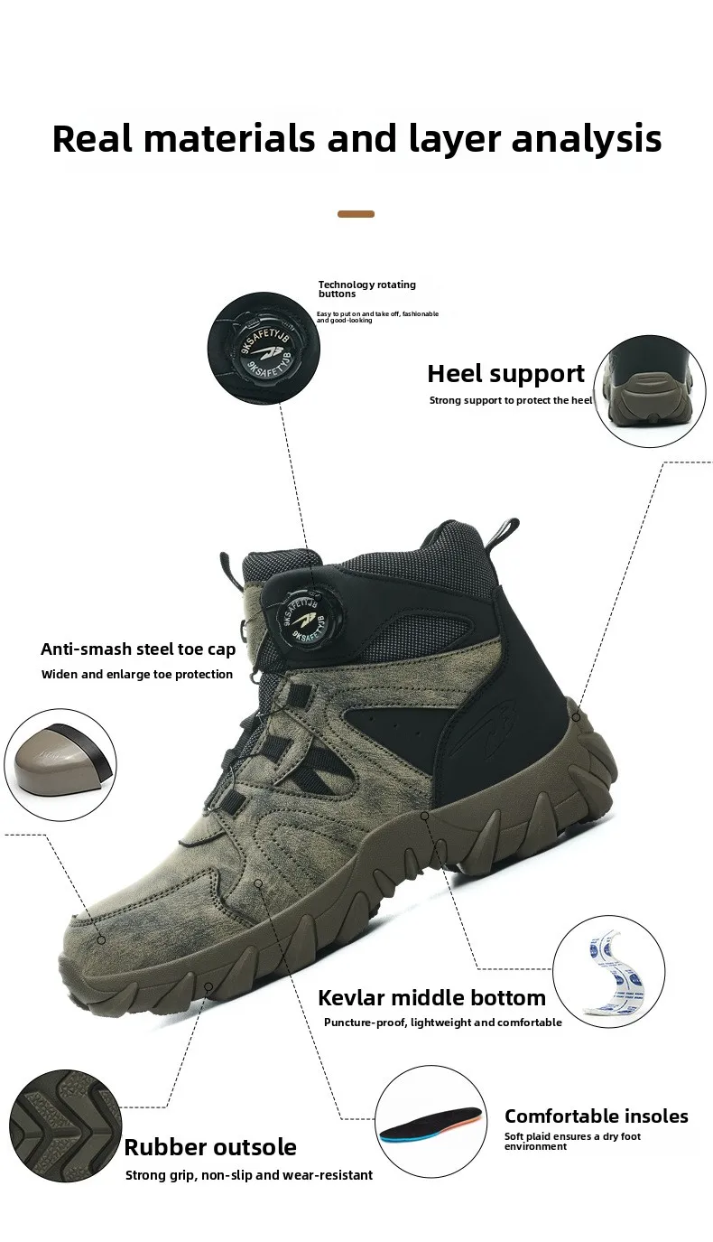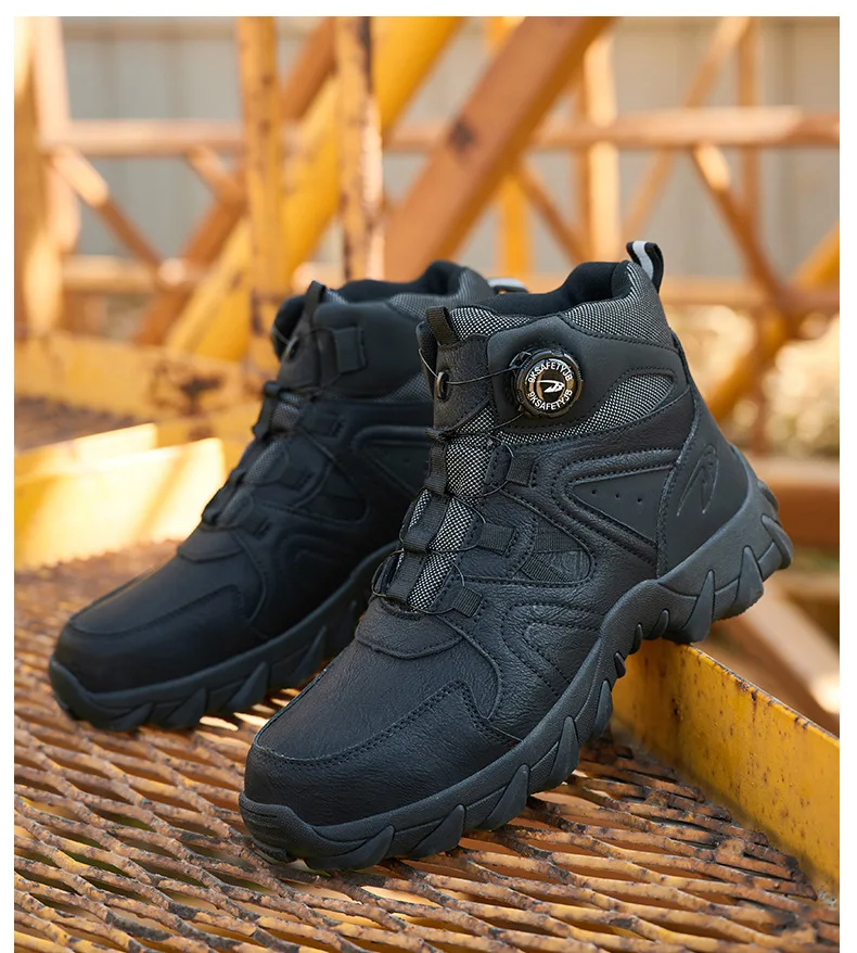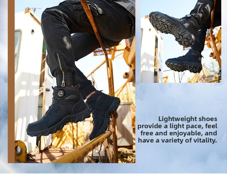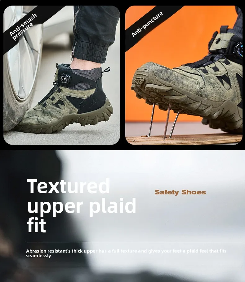 Rotary Buckle Work Boots Safety Steel Toe Shoes Men Breathable Safety Shoes Brand Indestructible Shoes Puncture-Proof work Shoes