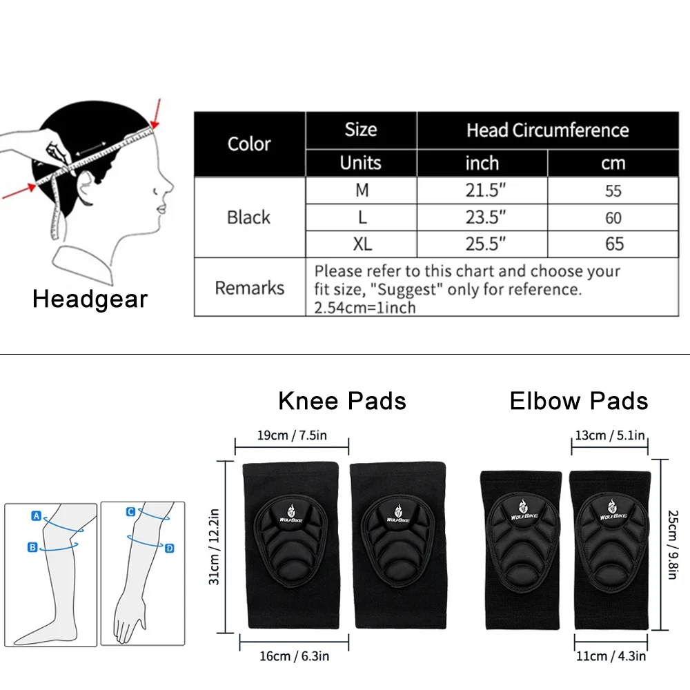Tips: Elbow pads and knee pads are all one size fits all. Please check the size chart or consult our customer service before placing an order. Thank you!